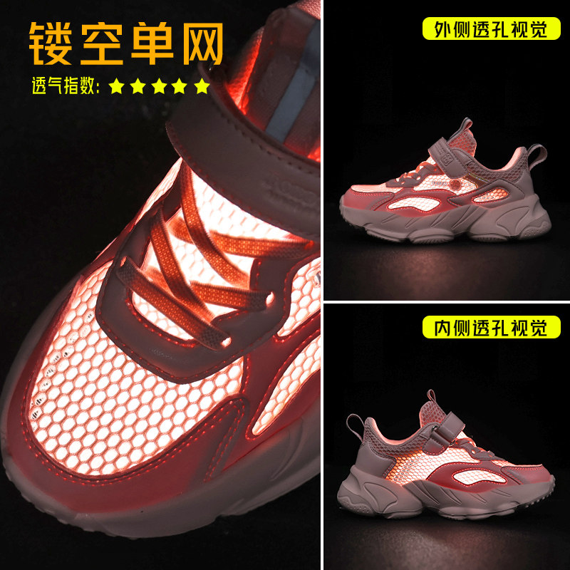 巴布豆女童鞋夏季透气网面运动鞋镂空女孩网鞋儿童小白鞋跑步鞋子