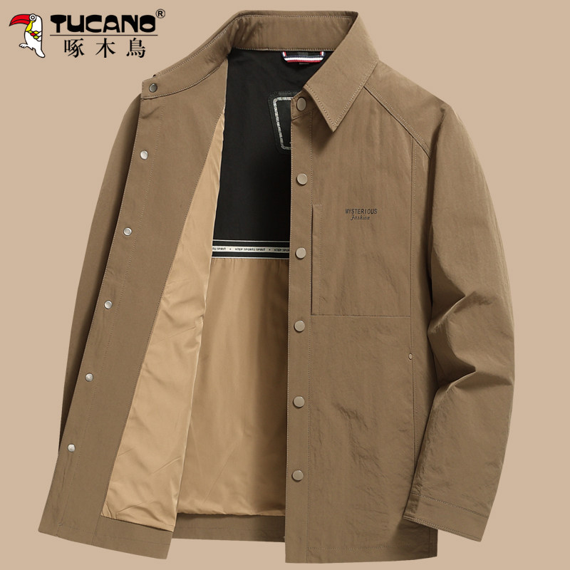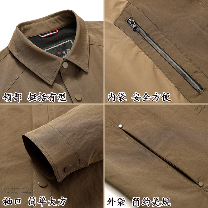 啄木鸟新款春季休闲薄款夹克秋冬宽松中年爸爸装翻领男士夹棉外套