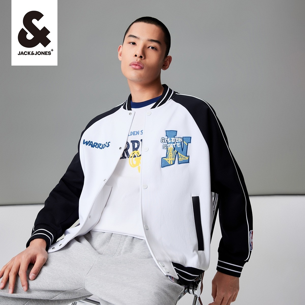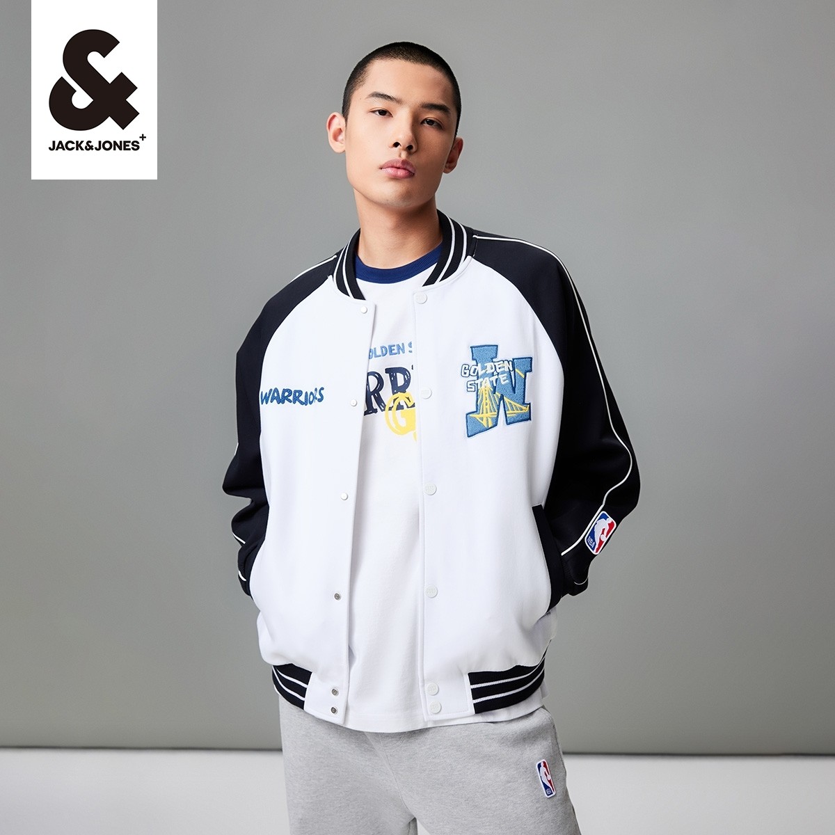 杰克琼斯男装夹克 外套春季NBA联名勇士队宽松字母刺绣上衣男款