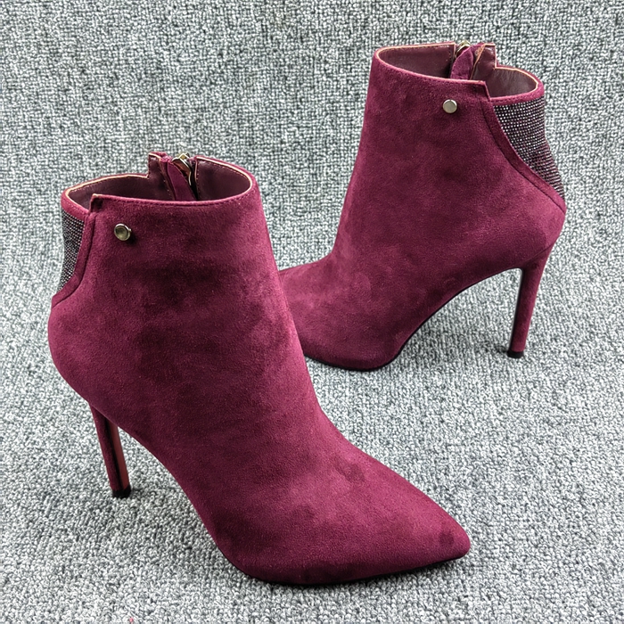 万里马3436码撤柜断码处理秋季新款尖头细跟高跟绒面时尚百搭女靴