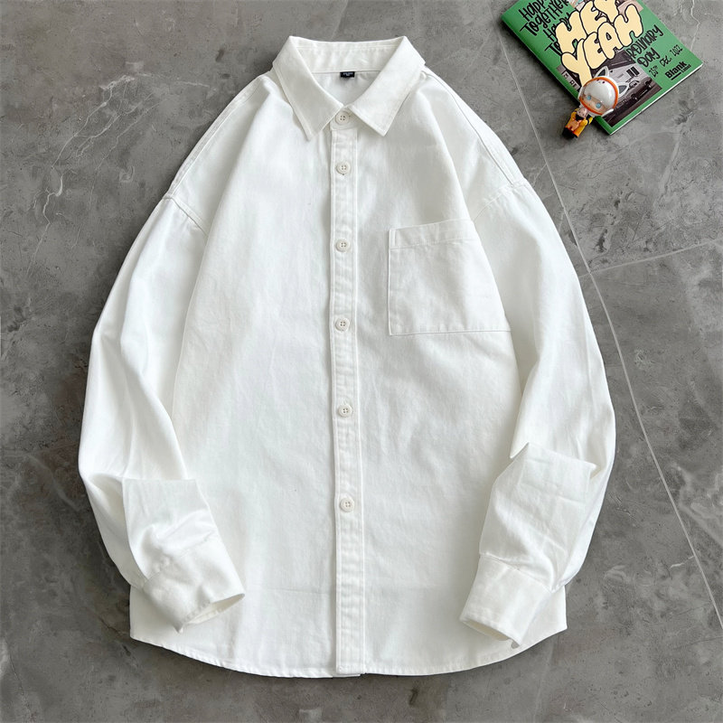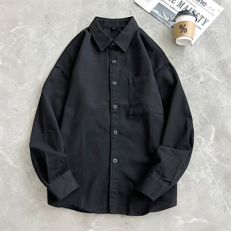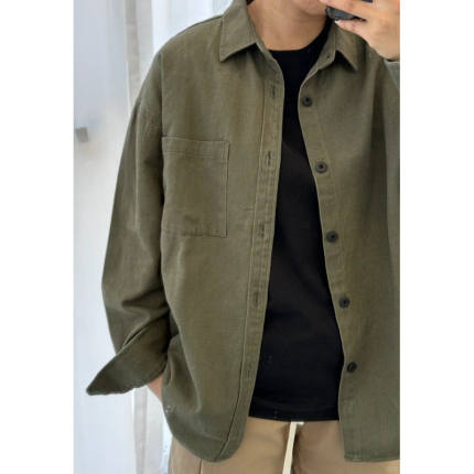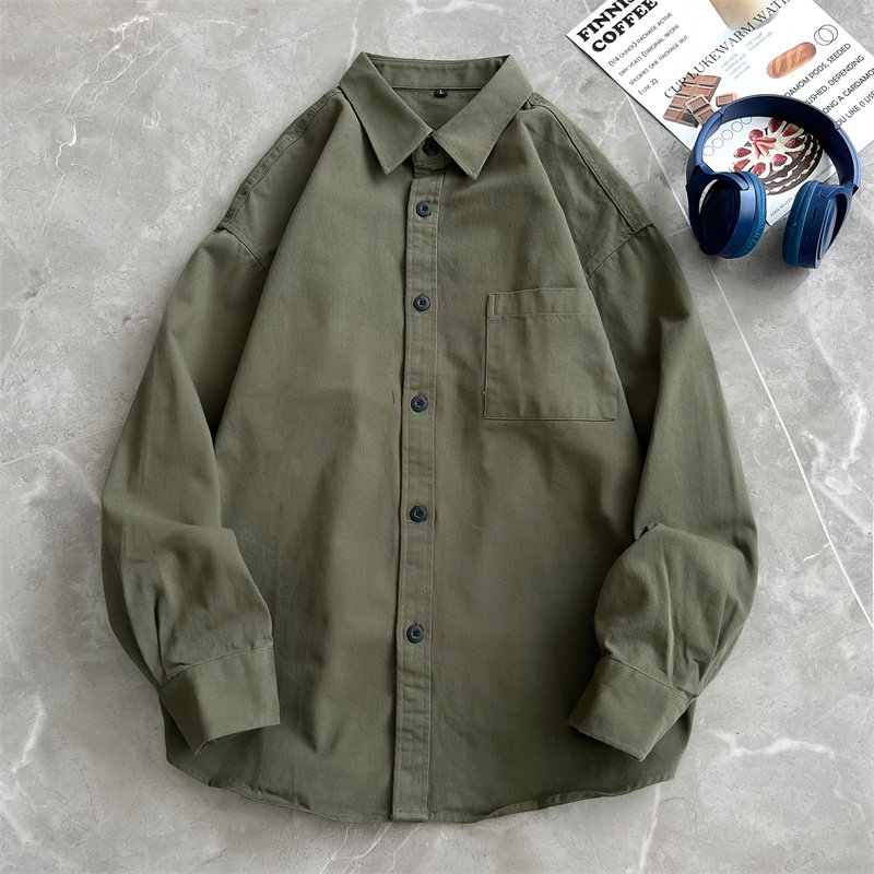 日系复古军绿色工装衬衫男秋季穿搭潮牌休闲宽松纯棉长袖衬衣外套