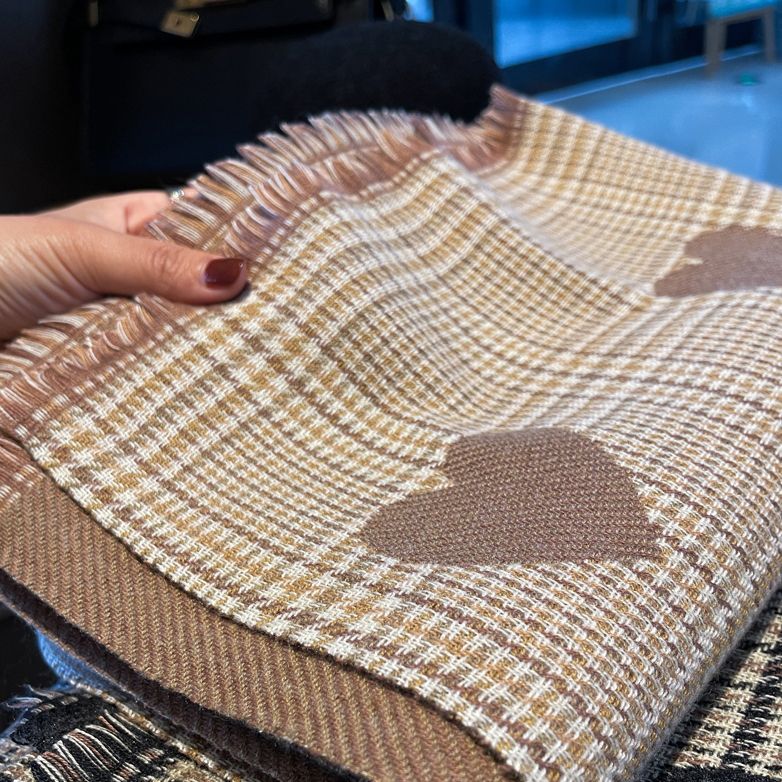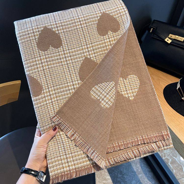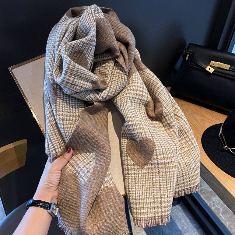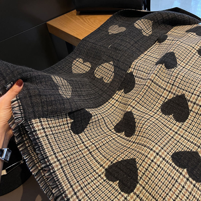 披肩秋季韩版时尚爱心小细格子保暖加厚亲肤围脖仿羊绒围巾女冬季