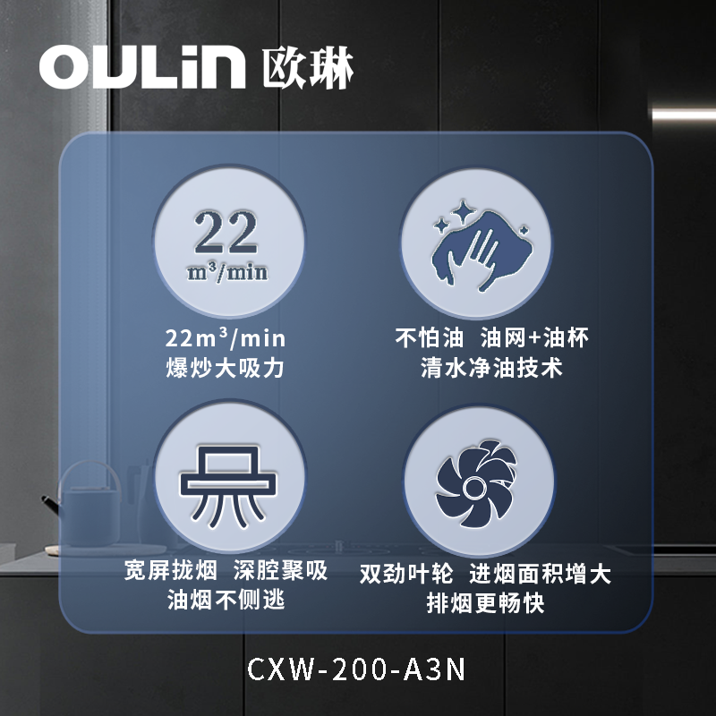 欧琳抽油烟机家用厨房大吸力顶吸式白色塔式吸油烟机吸油机白A3N