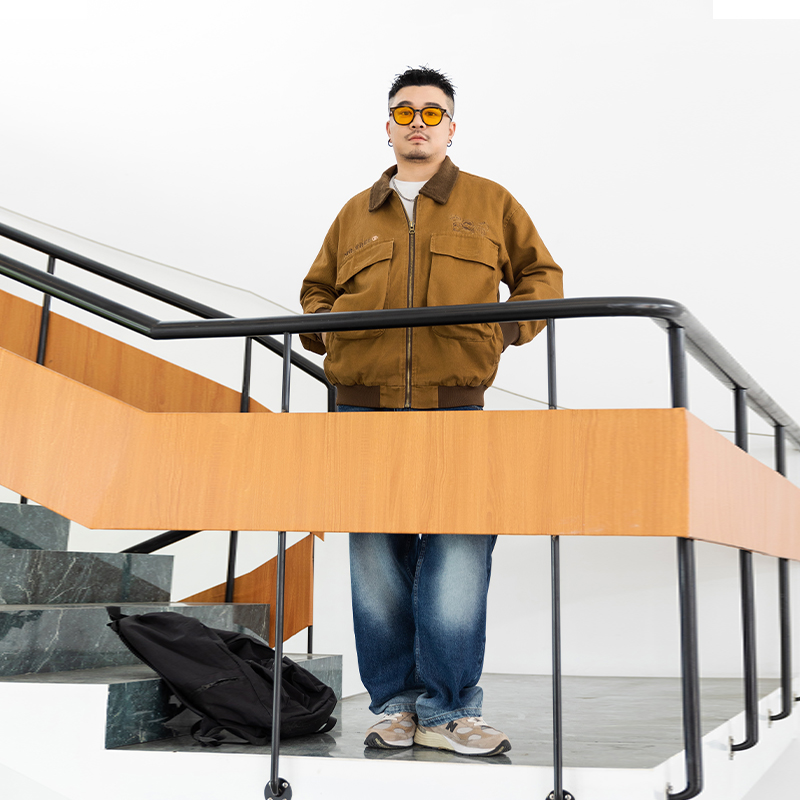 韦恩泽维尔大码美式复古飞行员夹克男春秋季宽松翻领工装外套8576