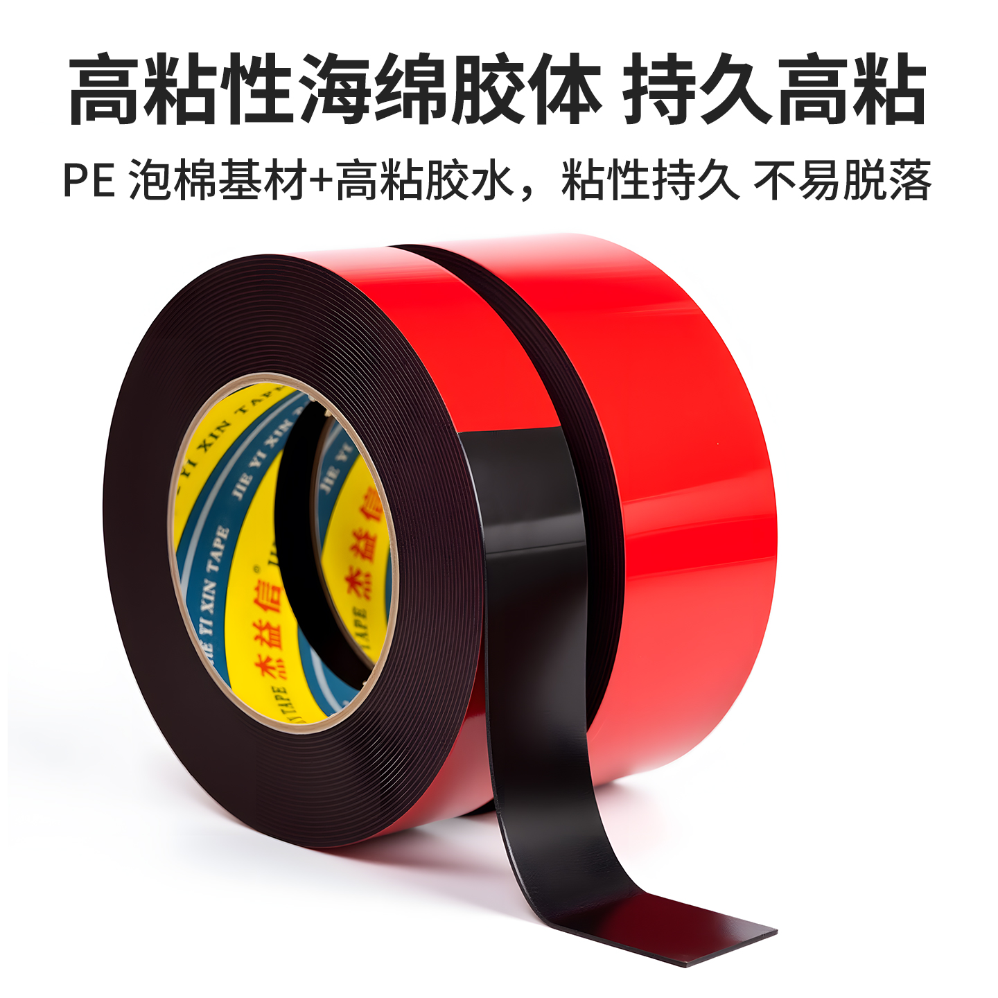 PE红膜黑色双面胶强力海绵高粘度泡沫泡棉厚双面胶带不锈钢固定