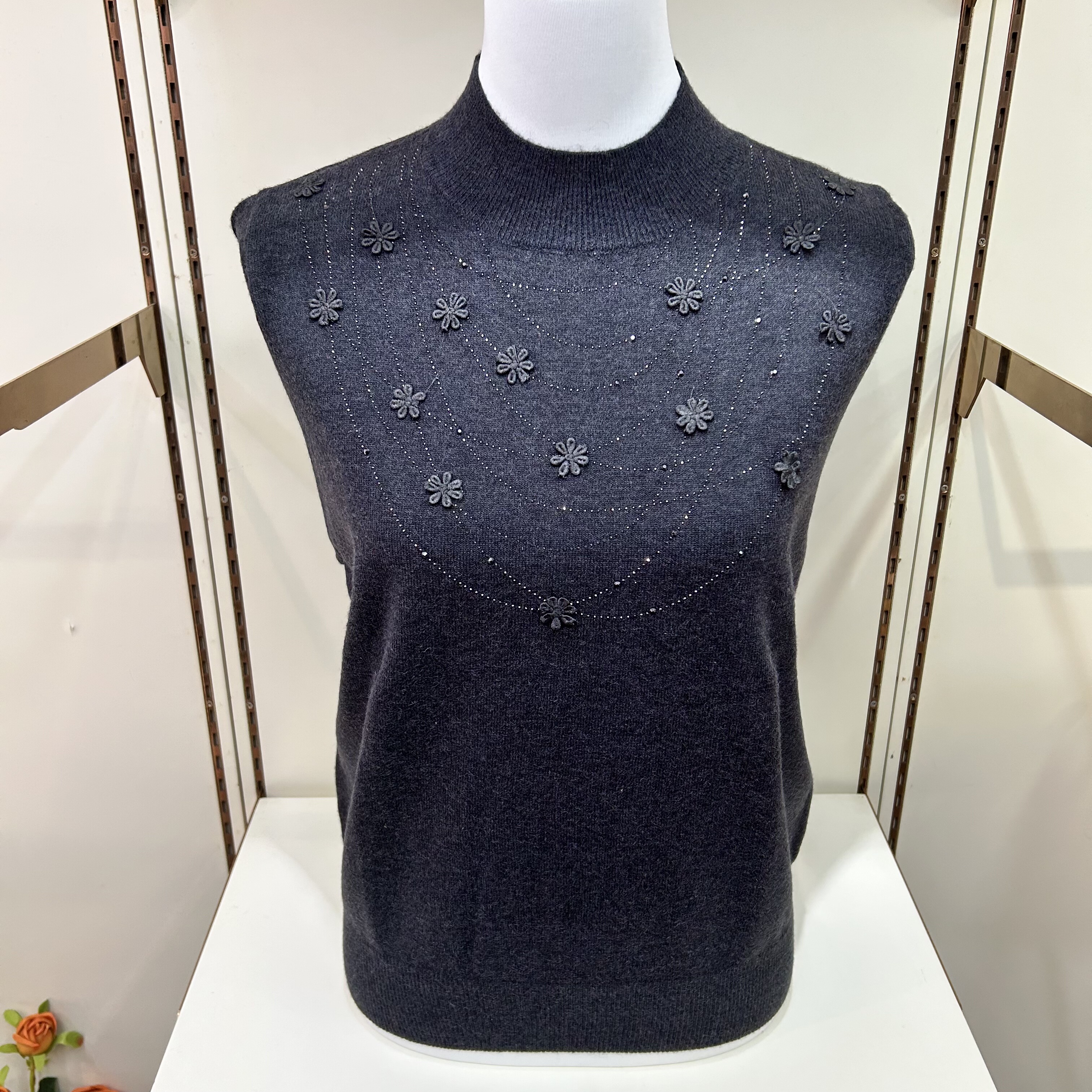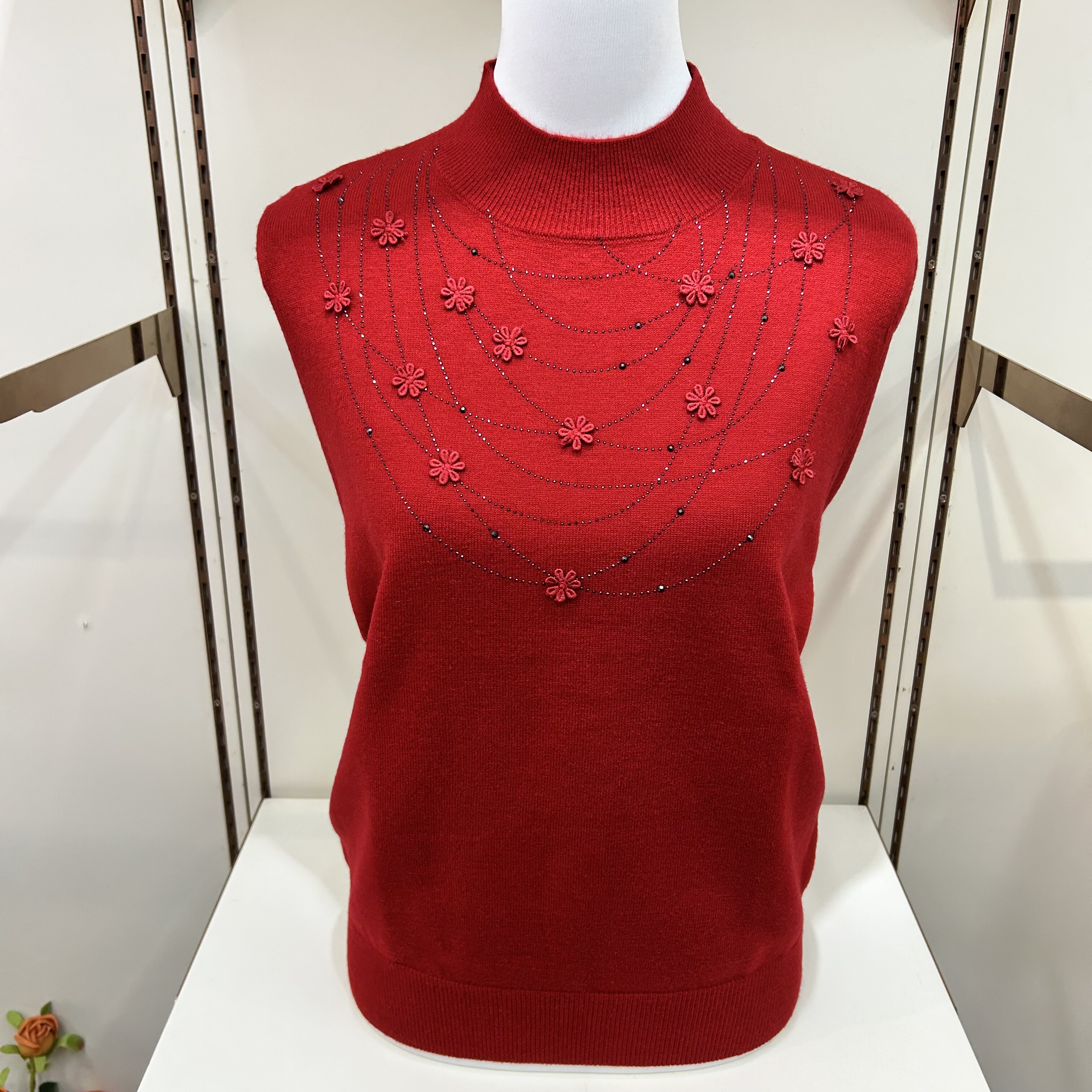 中年妈妈秋冬羊毛衫女纯色2025新款上衣圆领镂空打底针织毛衣气质