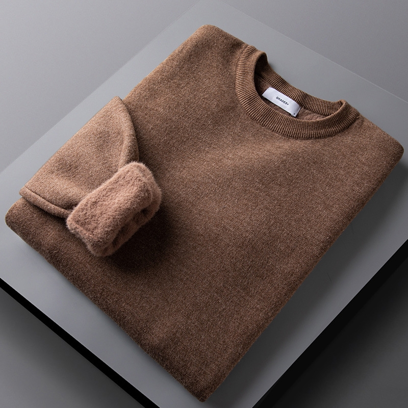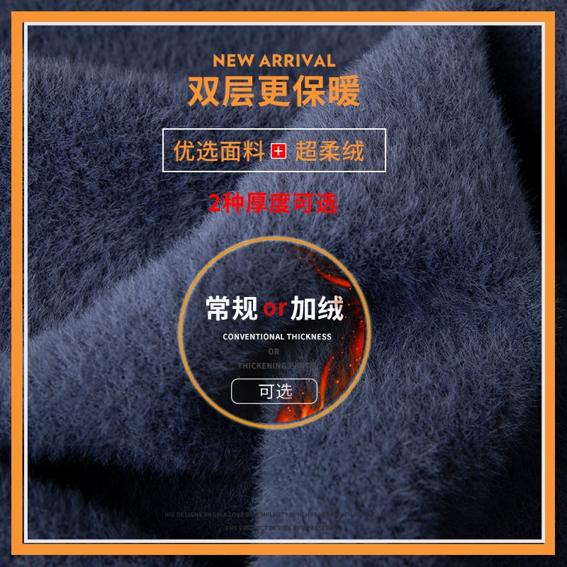 加绒加厚毛衣男士圆领宽松套头秋冬季保暖加绒内搭打底衫针织衫男