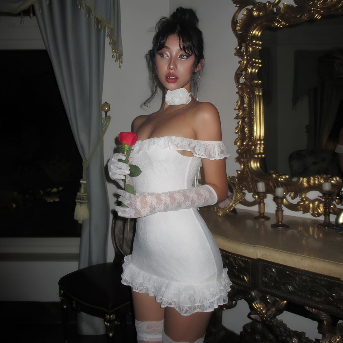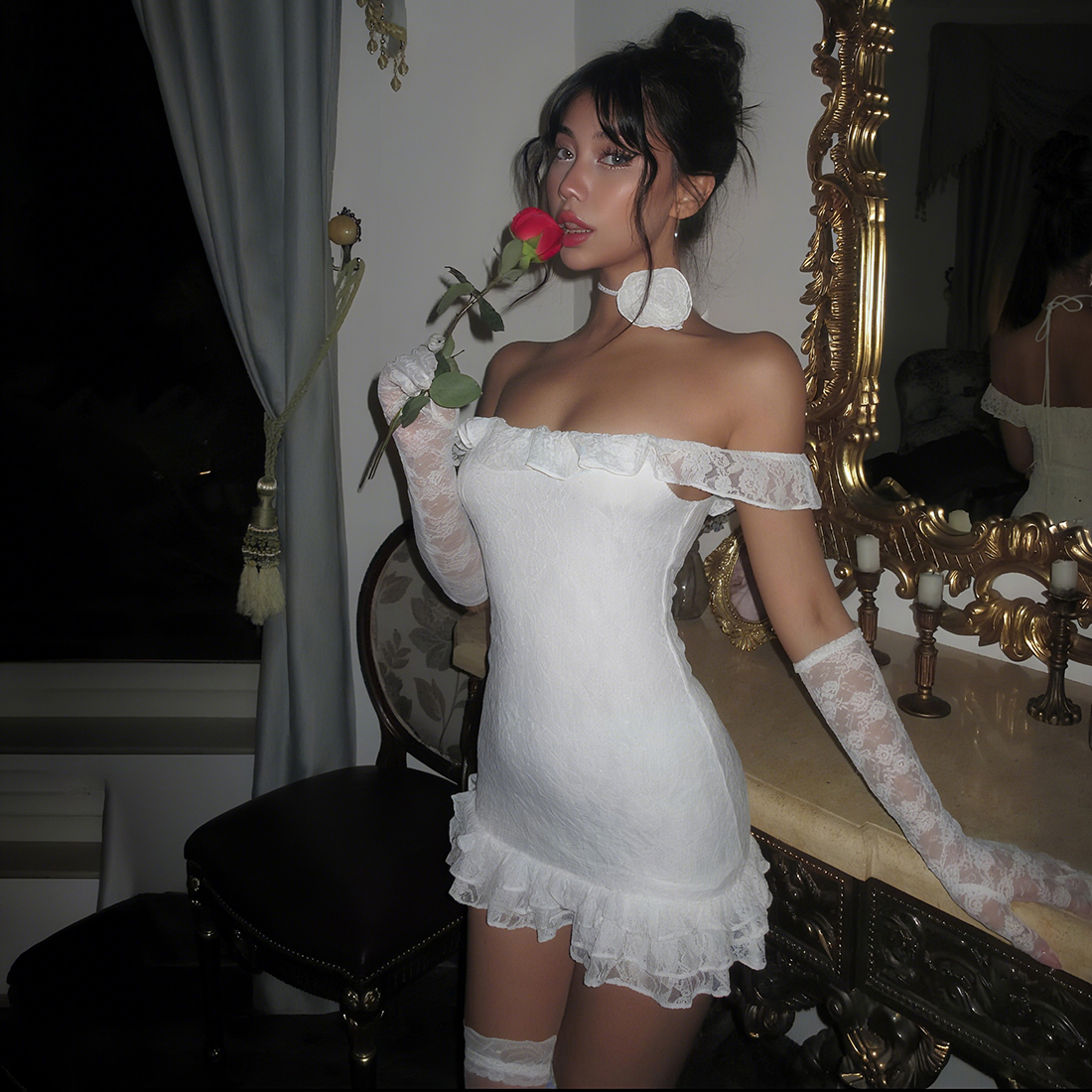 万圣节性感蕾丝显瘦一字肩连衣裙
