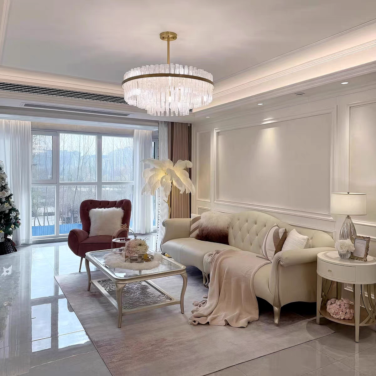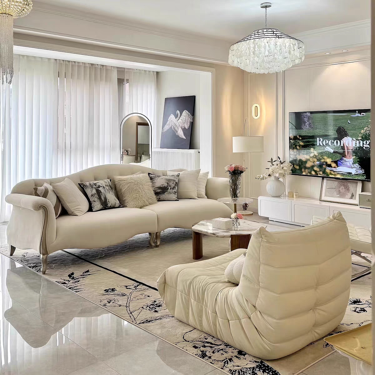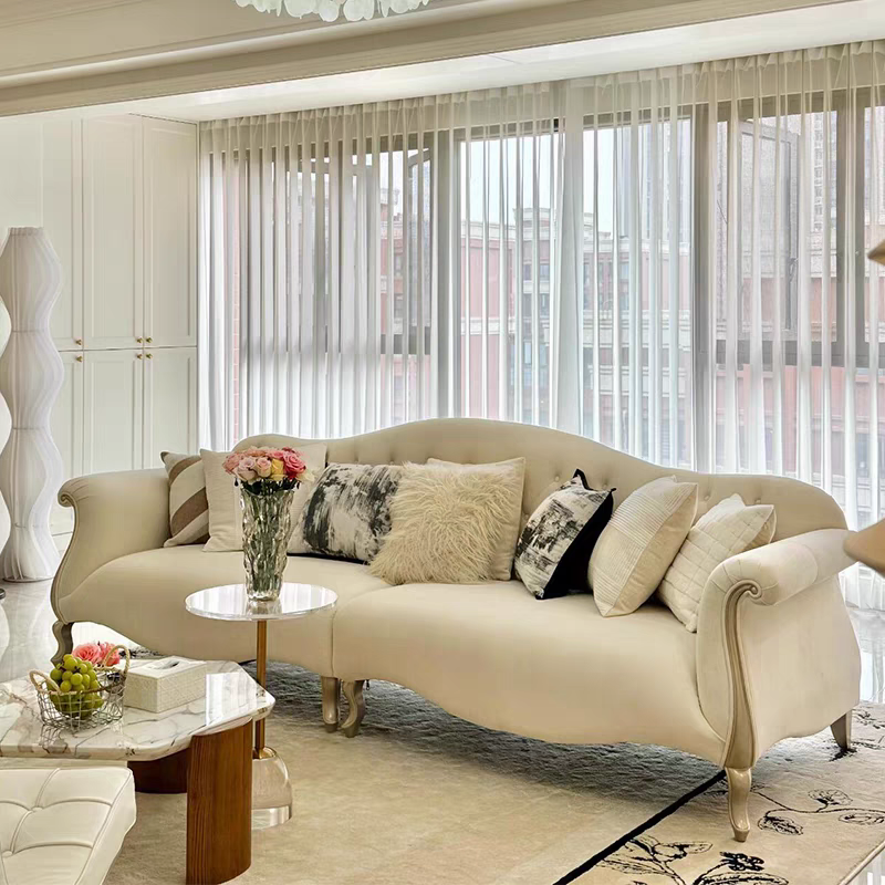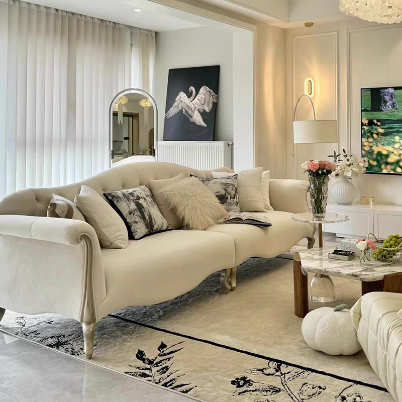 美式轻奢实木布艺沙发现代奶油风简约法式客厅沙发直排拉扣组合