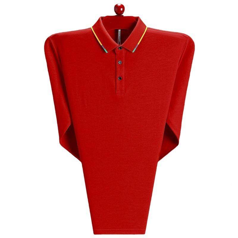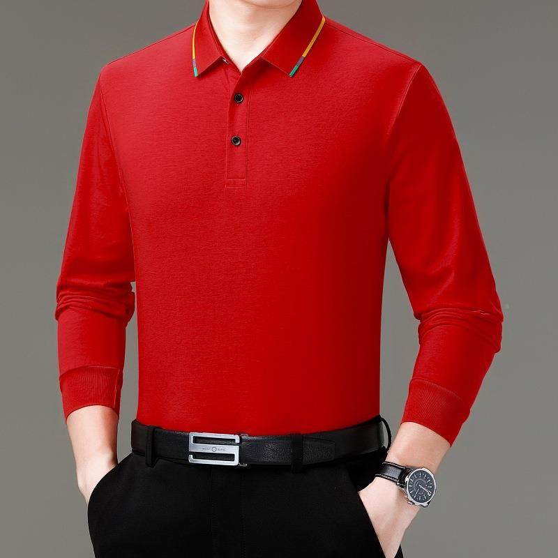 2502-LL士秋季大红爸色本命年中老年男长袖体恤丝光棉爸装恤衫