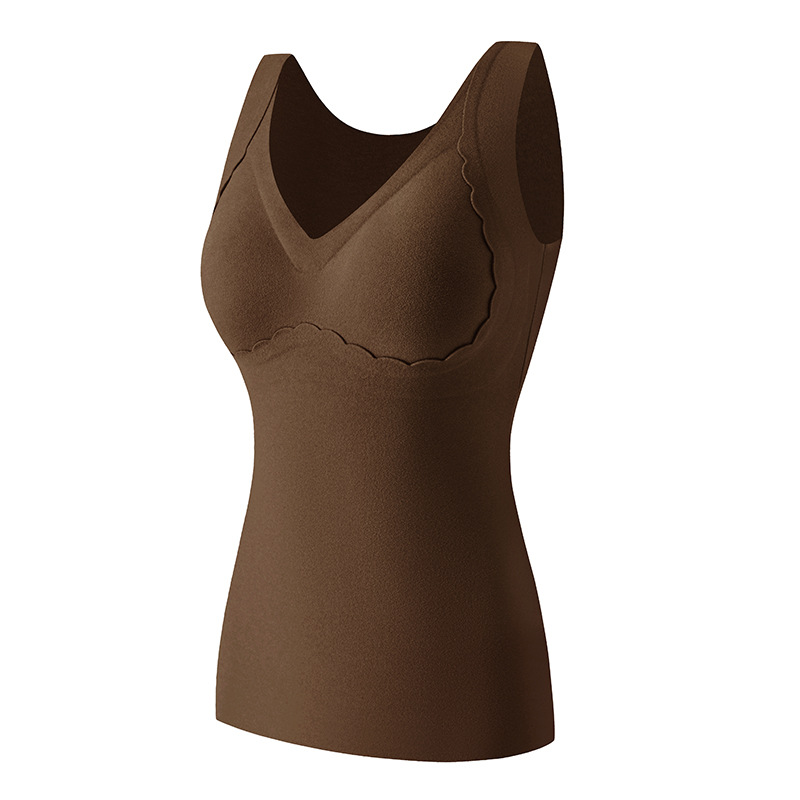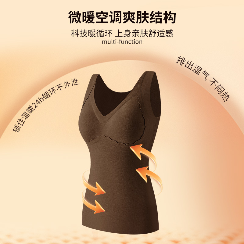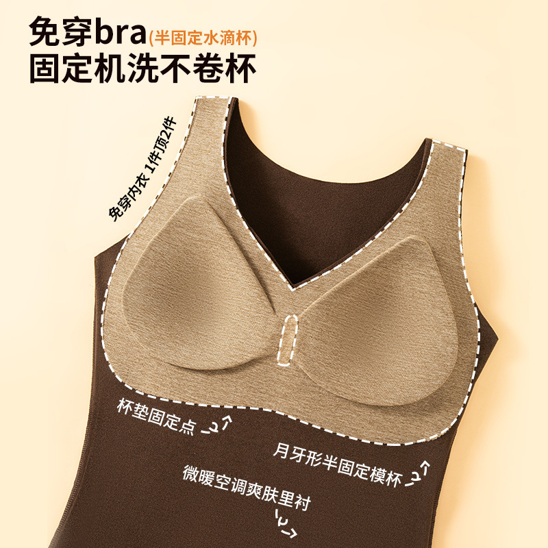 免穿文胸双面磨毛狐狸绒发热V领粉底液打底衫带胸垫保暖背心女士