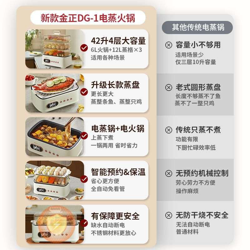 金正电蒸锅上蒸下煮家用多功能料理锅304不锈钢带蒸笼三层电蒸锅
