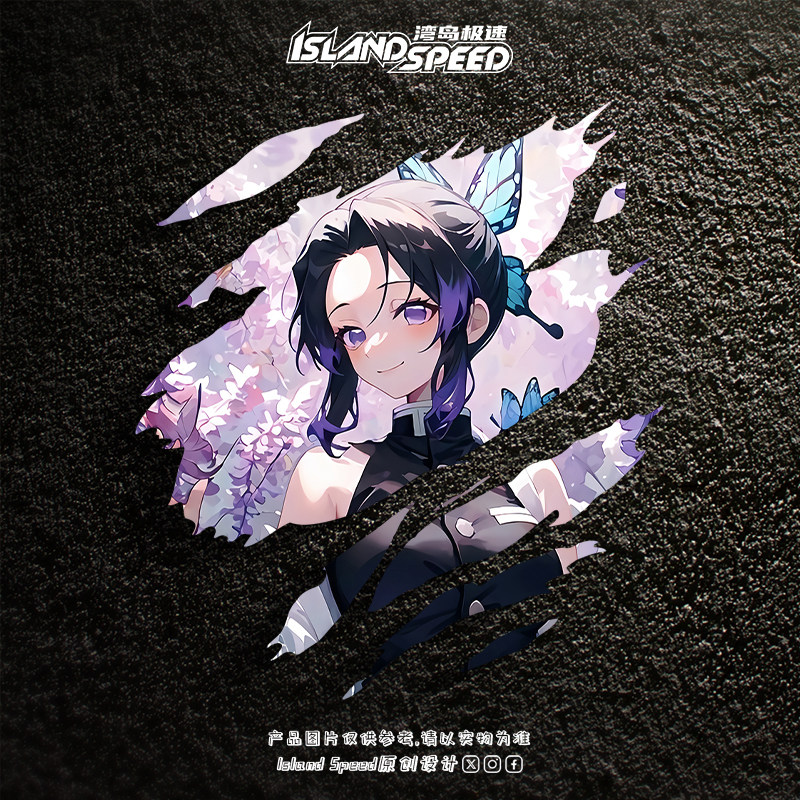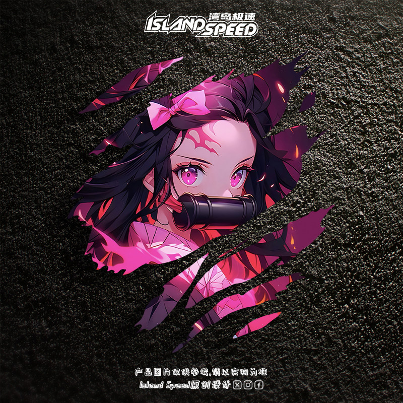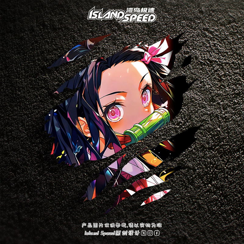 动漫鬼灭之刃灶门祢豆子撕裂汽车贴纸划痕遮挡装饰贴花