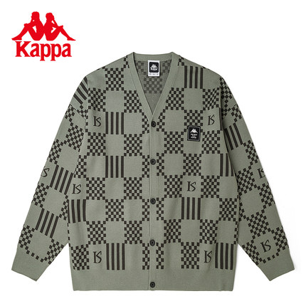 Kappa卡帕针织开衫情侣男女2026春季棋盘格毛衣休闲外套K0CY2LD70