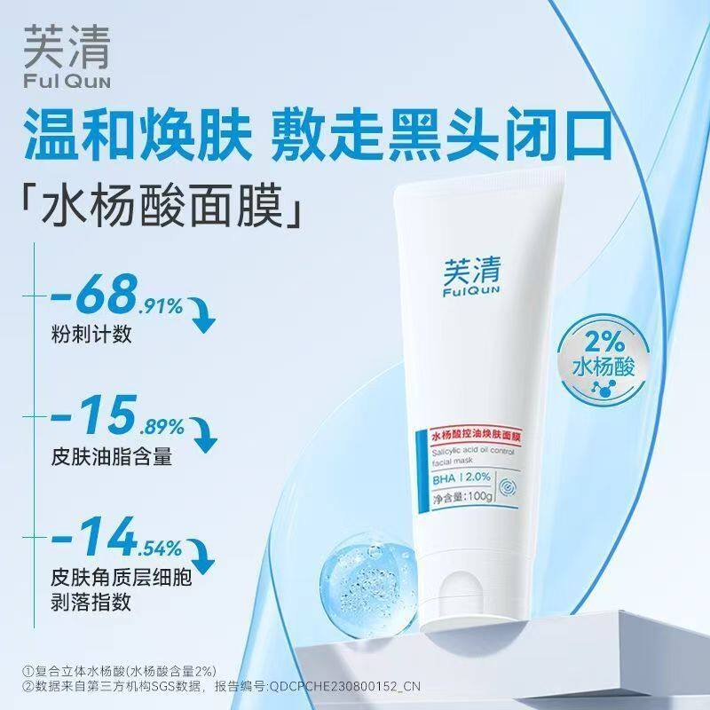 芙清水杨酸控油祛痘涂抹面膜焕肤疏通毛孔去角质去黑头粉刺洁面乳