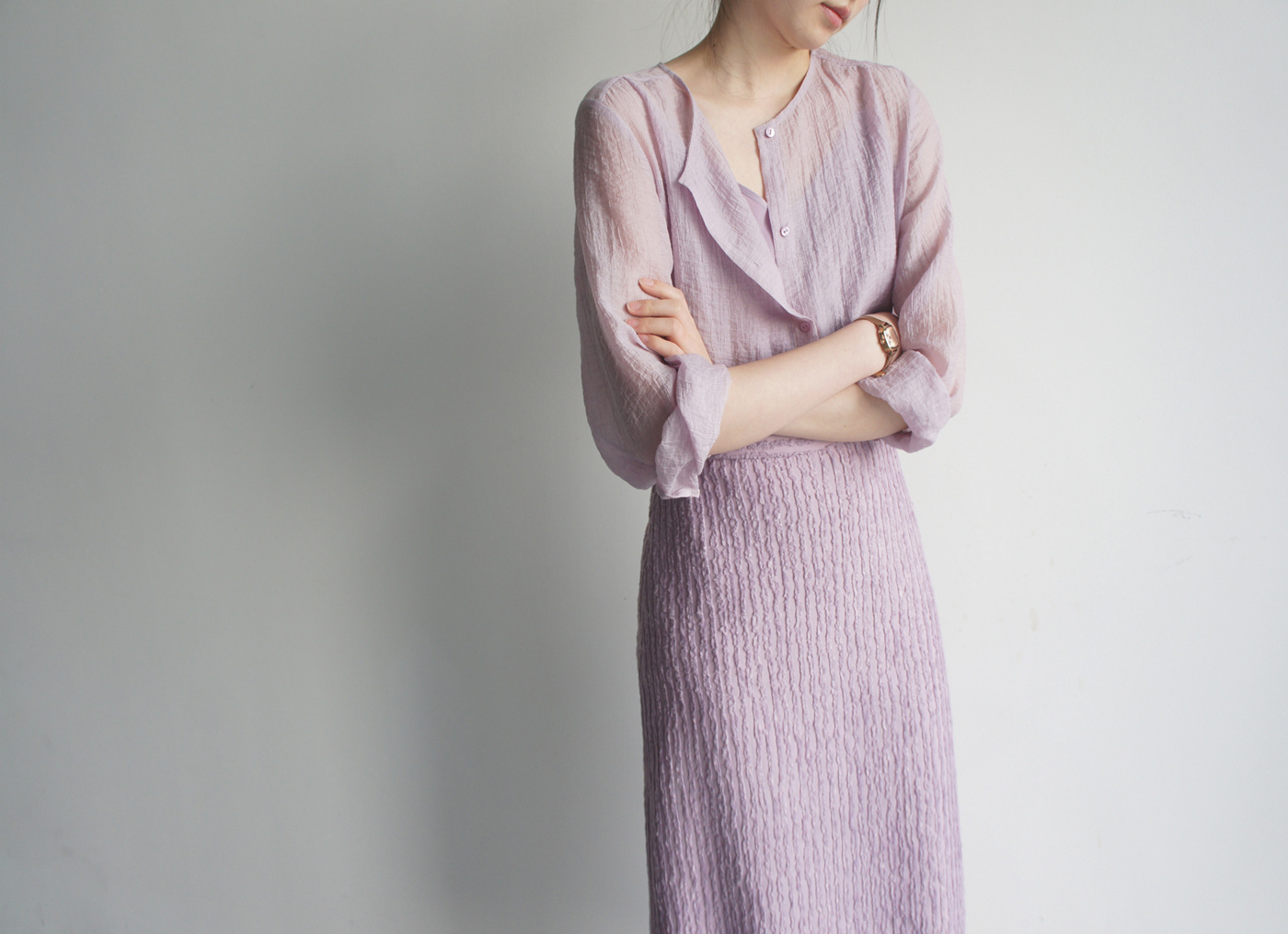 JOJOZ 芋泥啵啵立体条纹高腰半身裙过膝后开衩温柔时髦女下装23ss