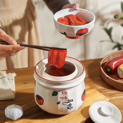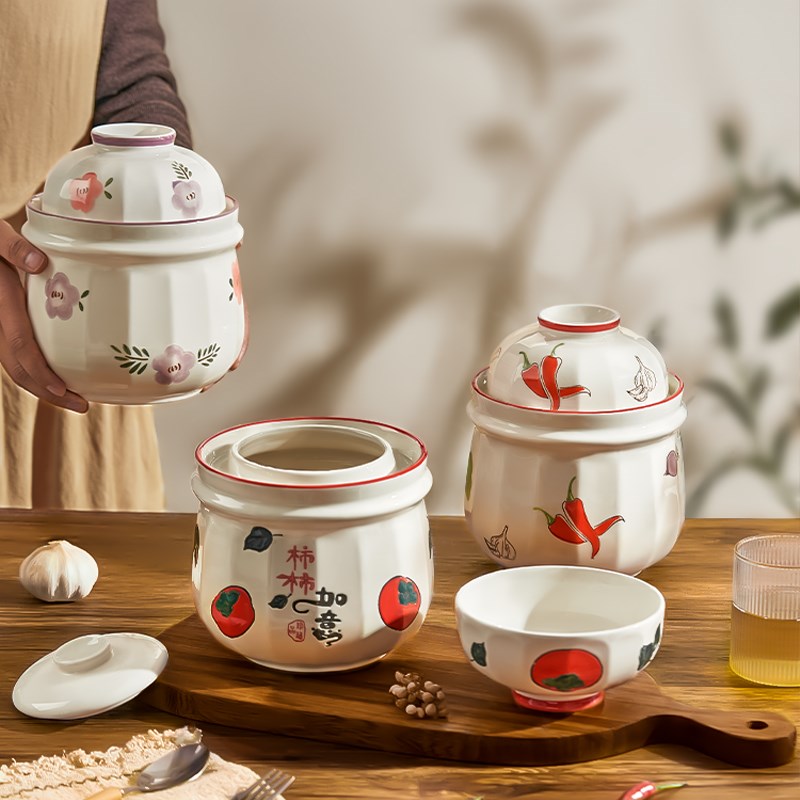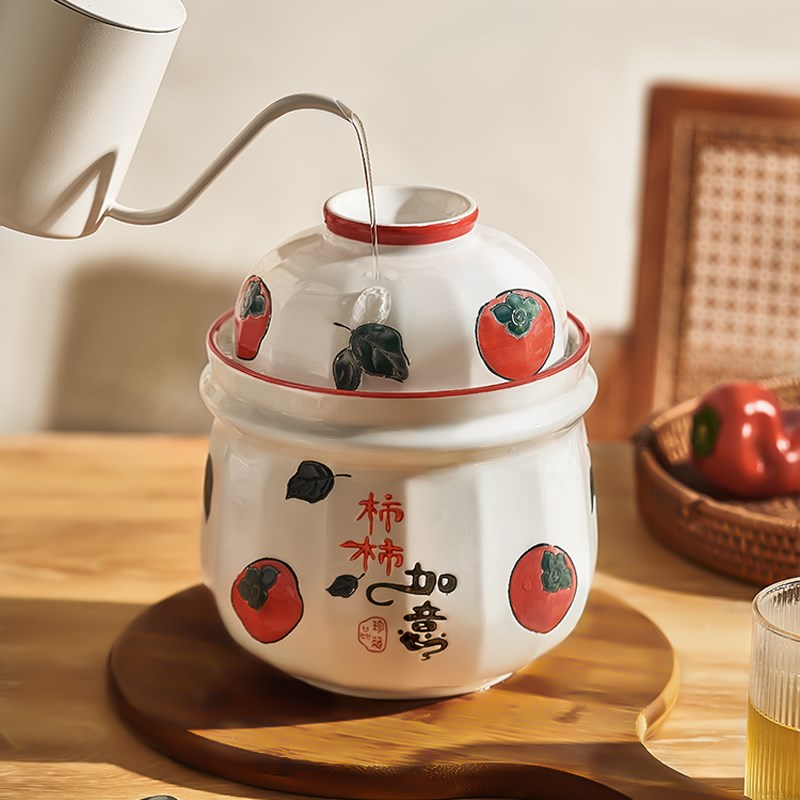 墨色田园泡菜坛子家用酸菜罐带盖陶瓷G腌菜密封罐小咸菜保鲜储物