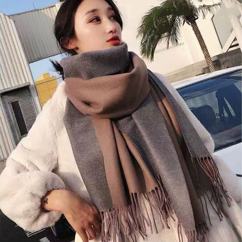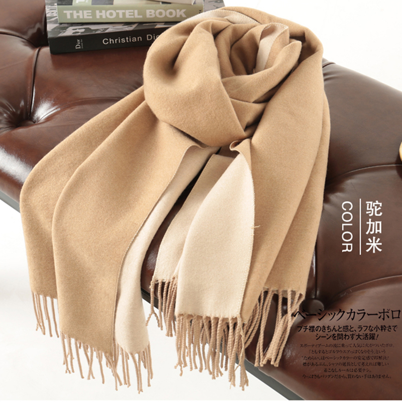 羊绒围巾女100纯羊绒羊毛抗起球春秋冬季鄂尔多斯市双面披肩两用