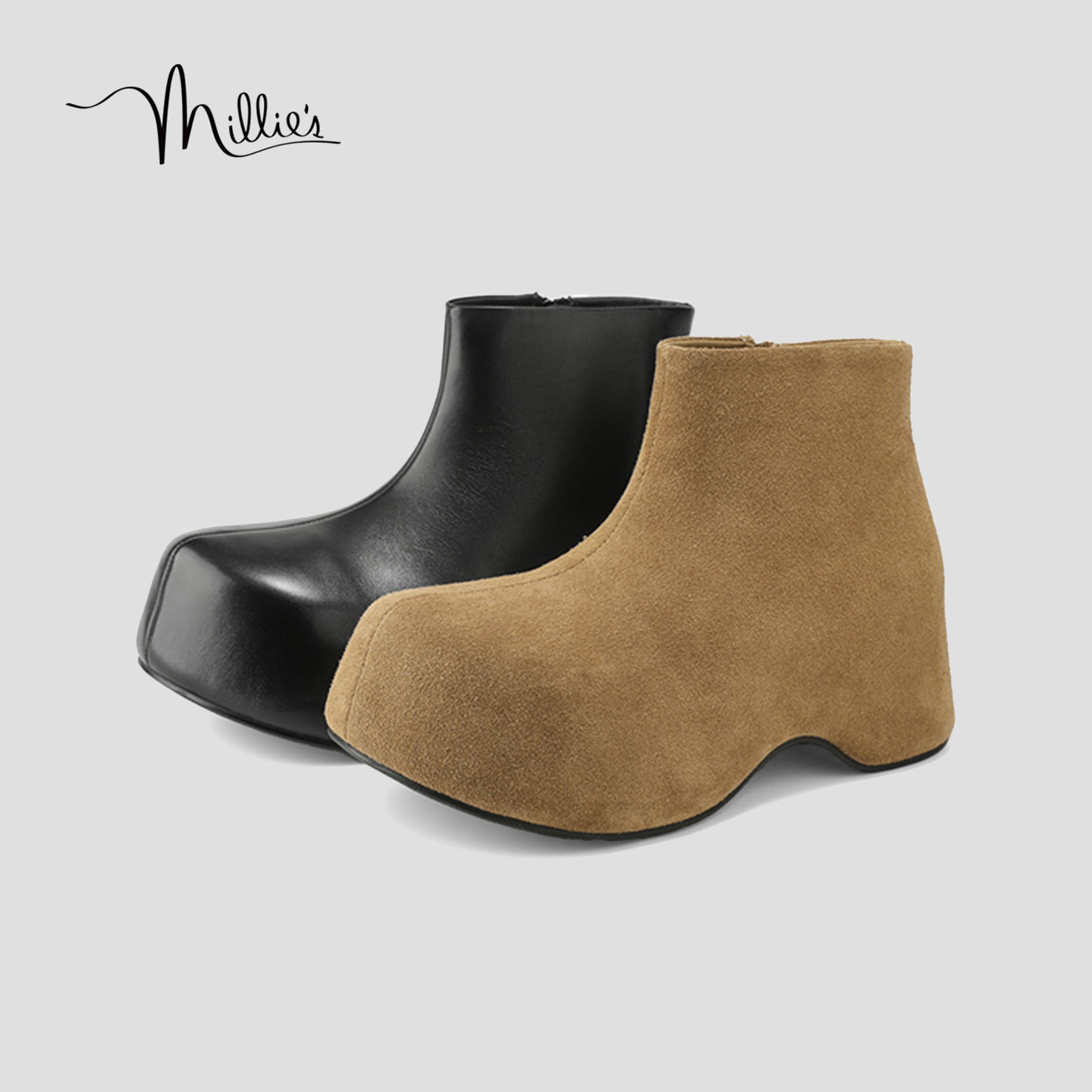 MILLIE'S/妙丽真皮厚底短靴女