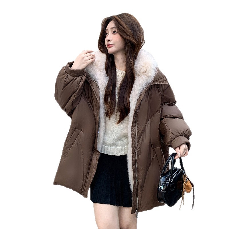 2025冬装新品300斤大码女270胖mm韩版遮肚显瘦狐狸毛领羽绒服240