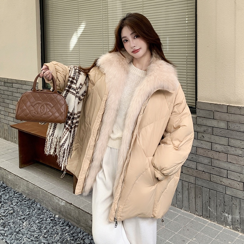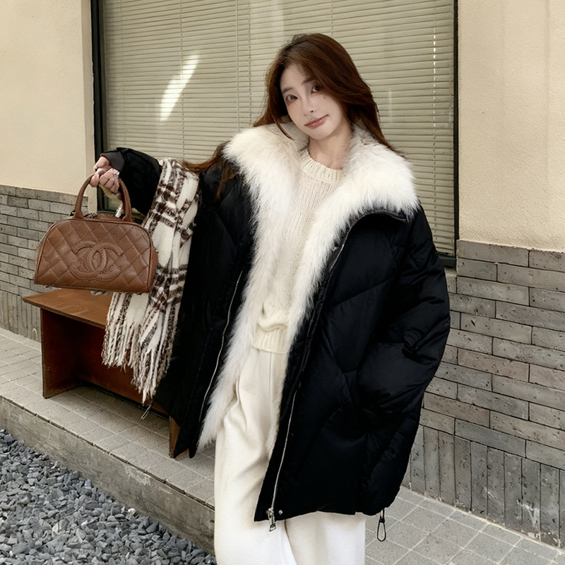 胖mm韩版遮肚显瘦狐狸毛领羽绒服