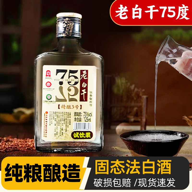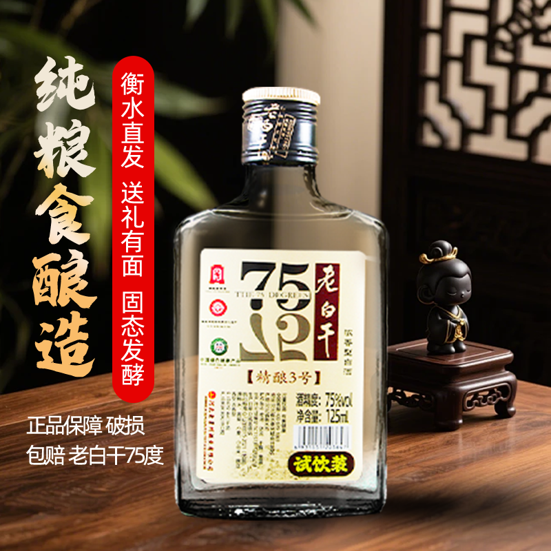 衡水小瓶老白干75/68/52度125ml整箱纯粮食高度酒河北特产高粱酒