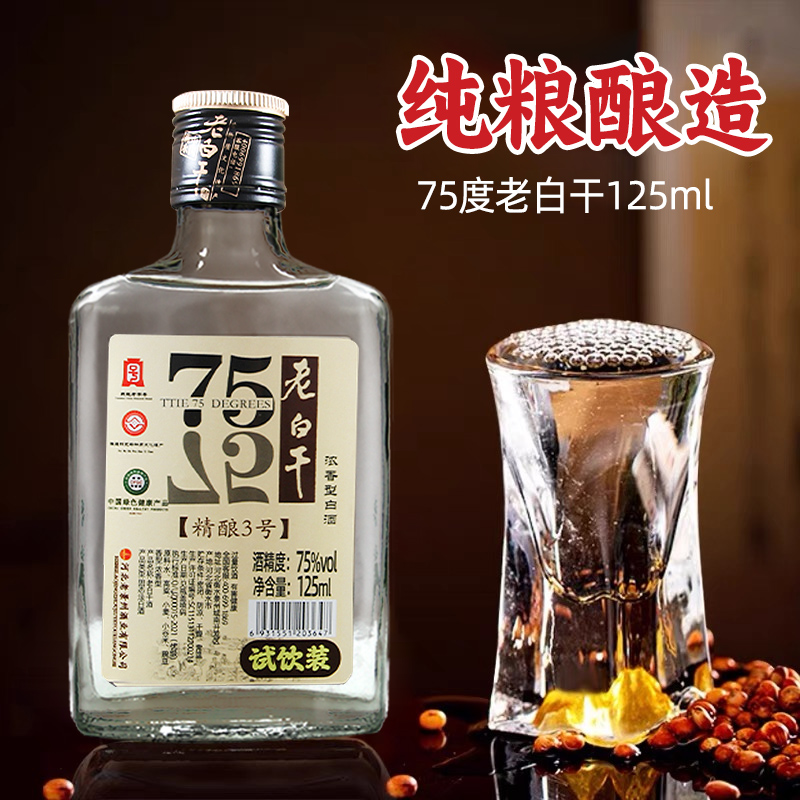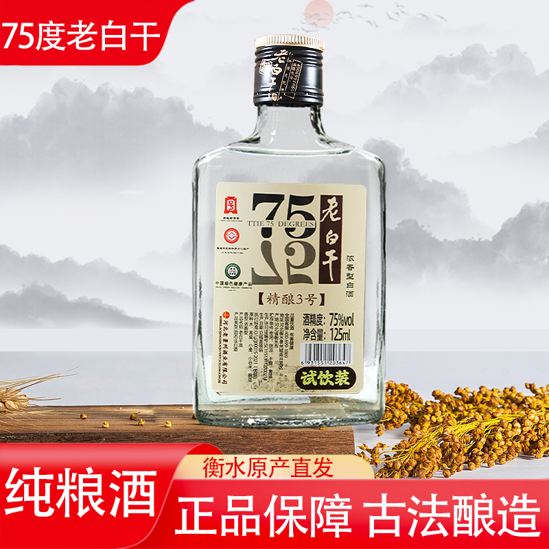 衡水酒老白干75度125ml小瓶整箱装纯粮食高度白酒河北特产高粱酒
