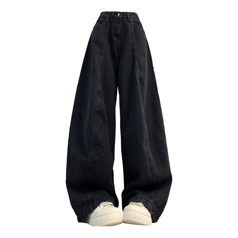 美式复古黑色弯刀牛仔裤女秋冬款高街设计感宽松垂感显瘦阔腿裤子