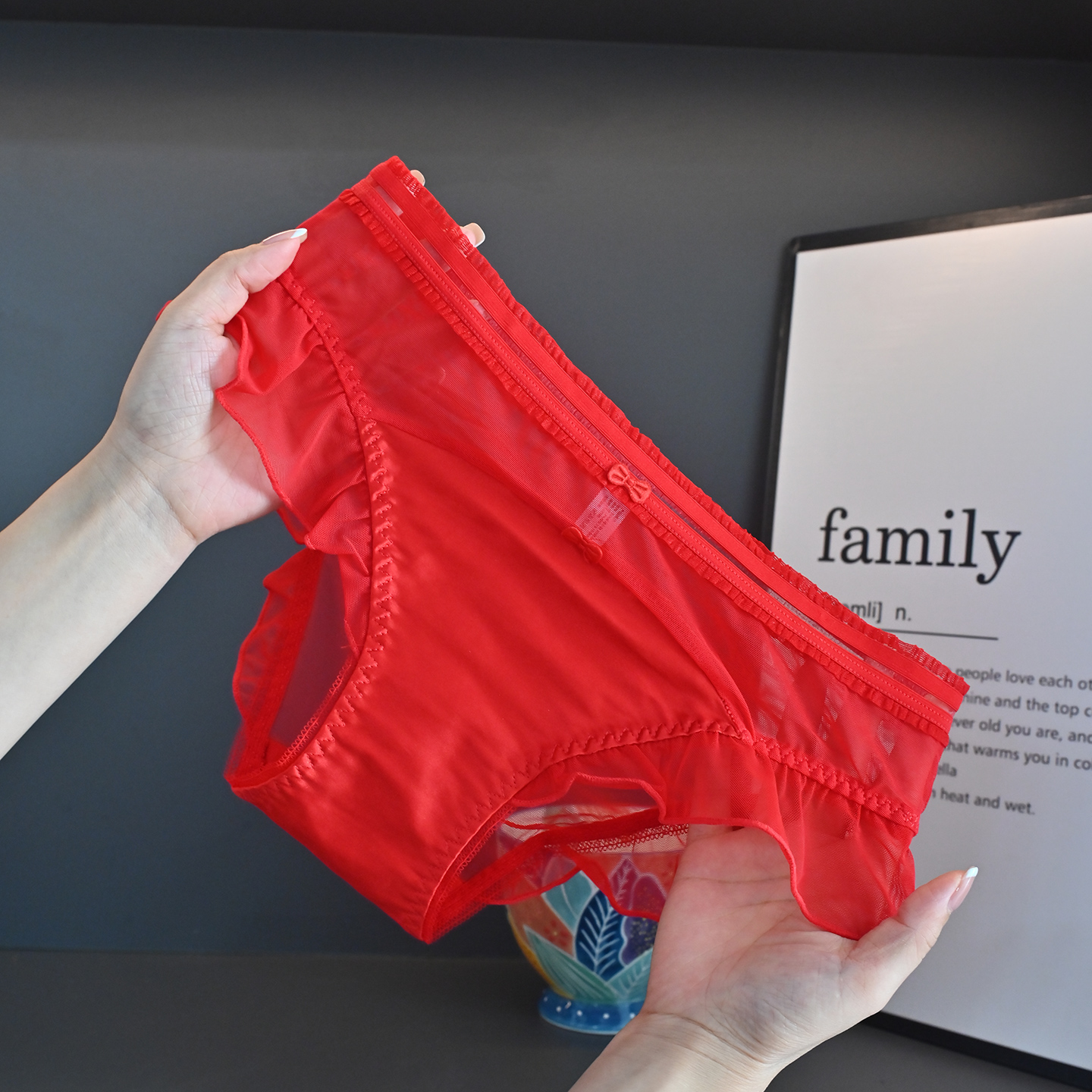 本命年大红色蕾丝纯欲女三角内裤
