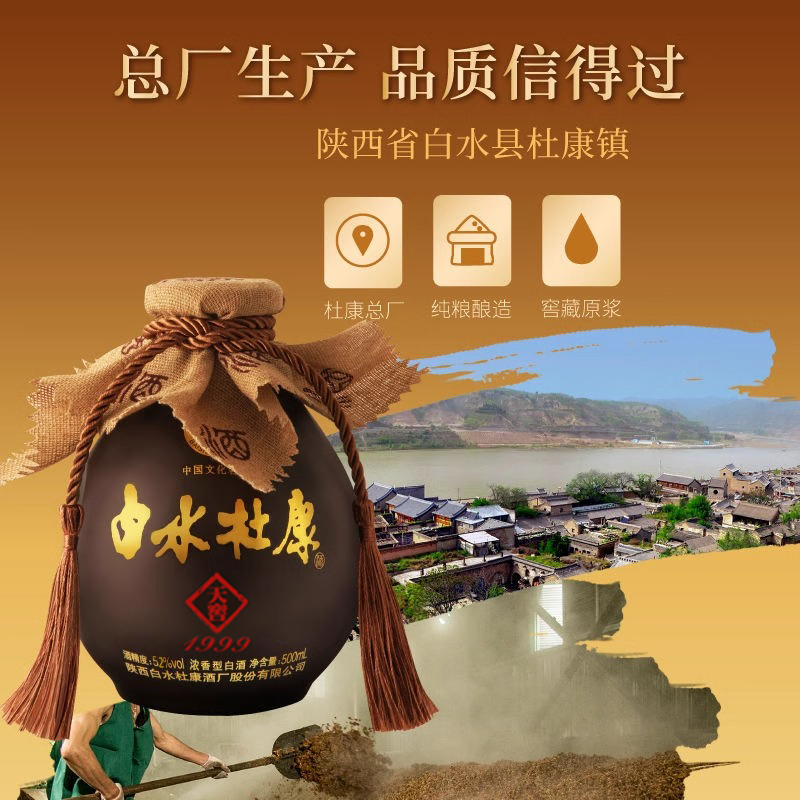 白水杜康天窖1999白酒整箱52度浓香型纯粮食酒500ml*6瓶送礼盒装