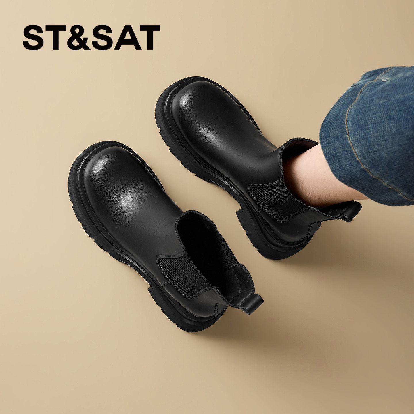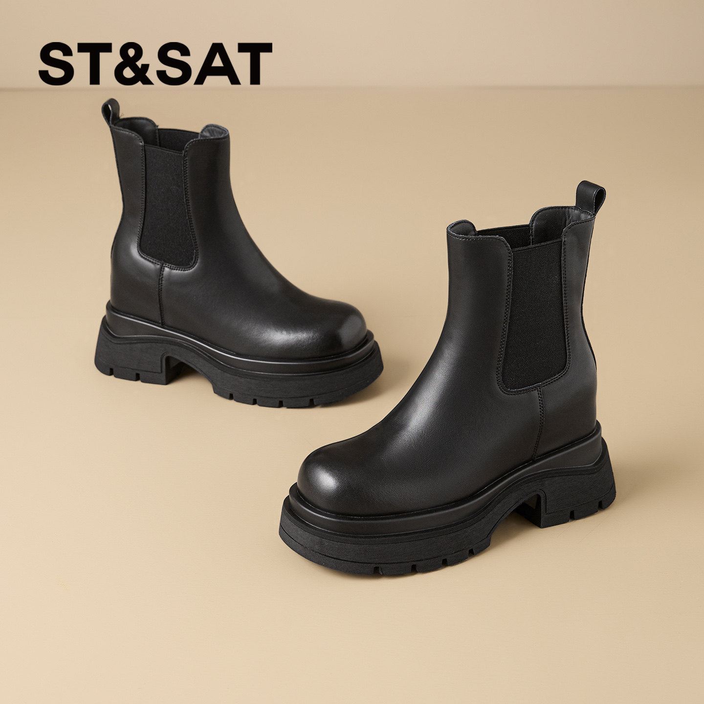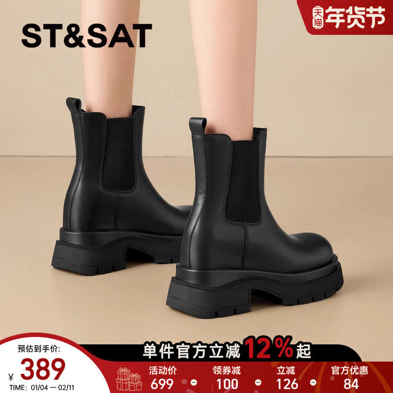 星期六黑色时装靴女2026新款春季厚底内增高马丁靴复古英伦短筒靴