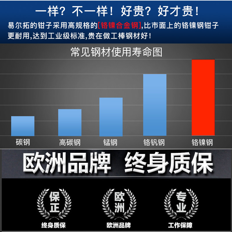 易尔拓工业级剪线钳斜嘴钳尖嘴钳