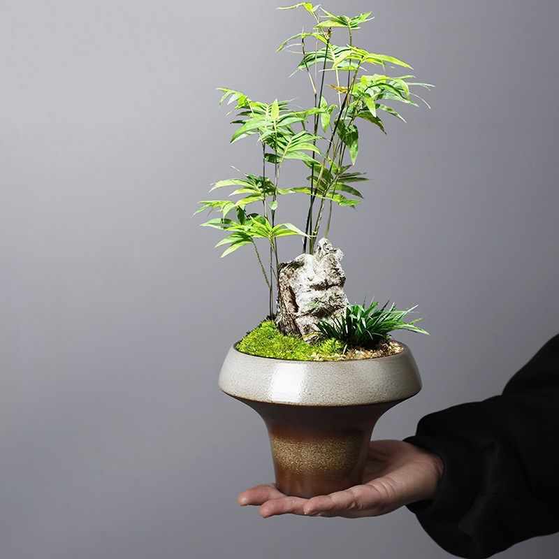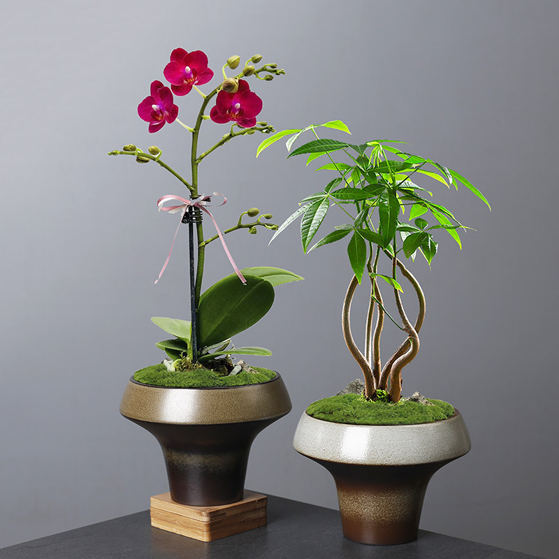 侘寂风复古窑变绿植花盆陶瓷水培植物多肉蝴蝶兰米竹造景花器
