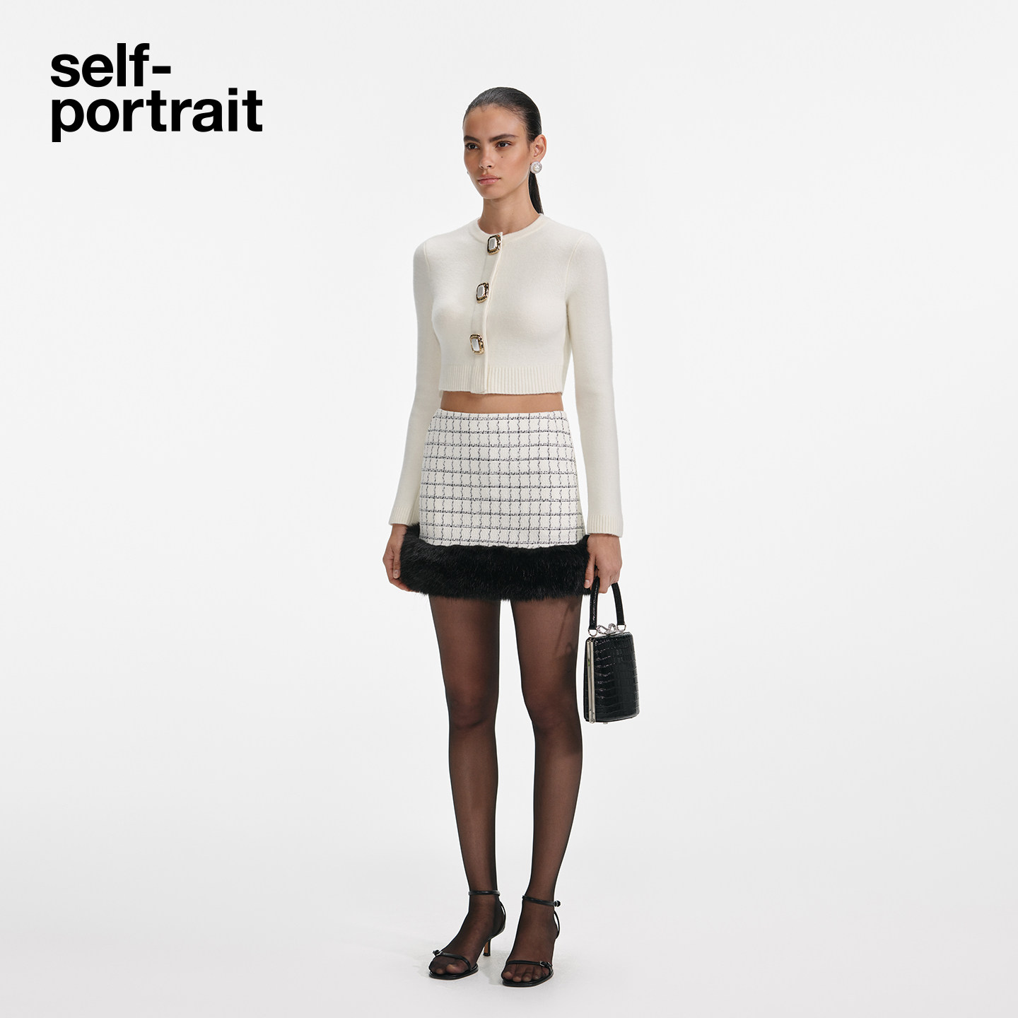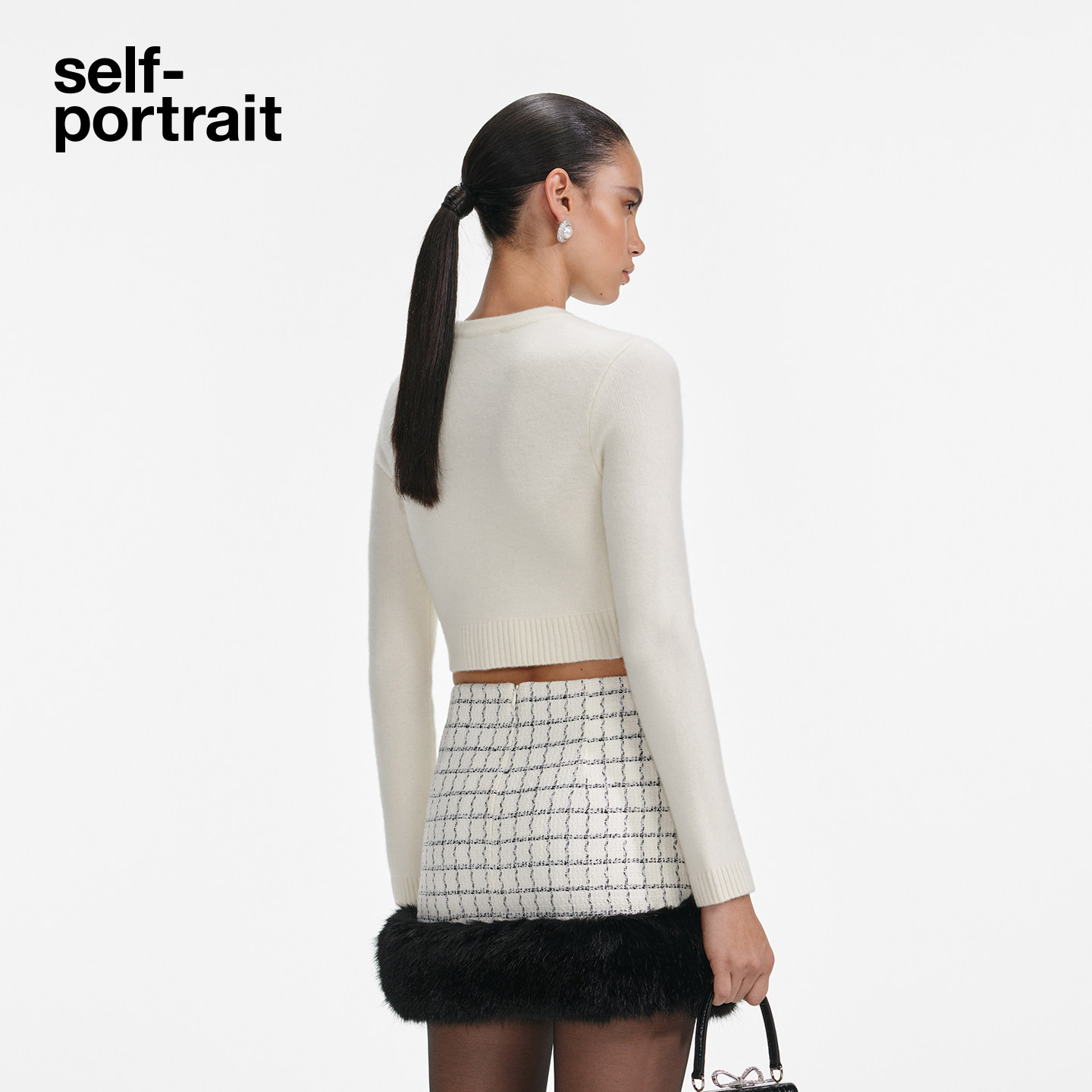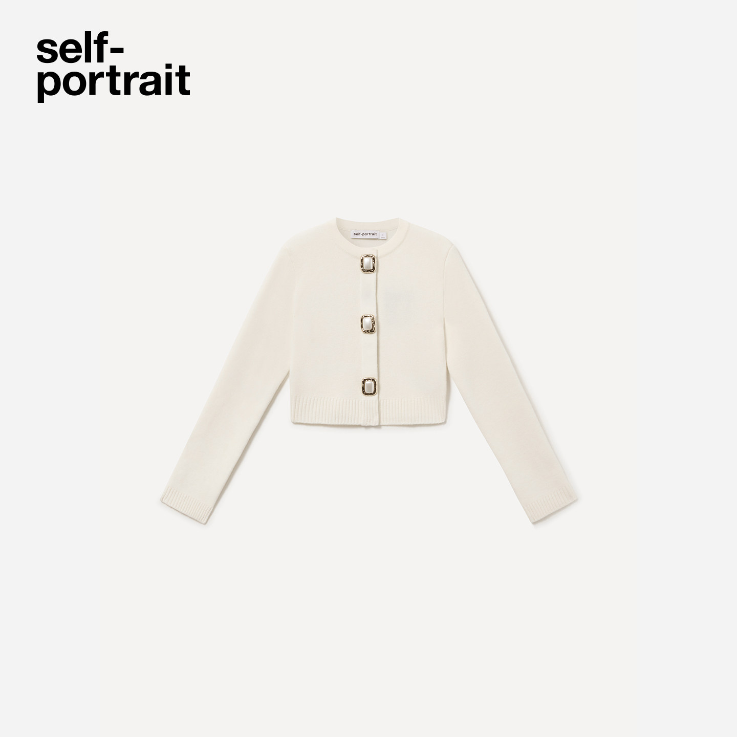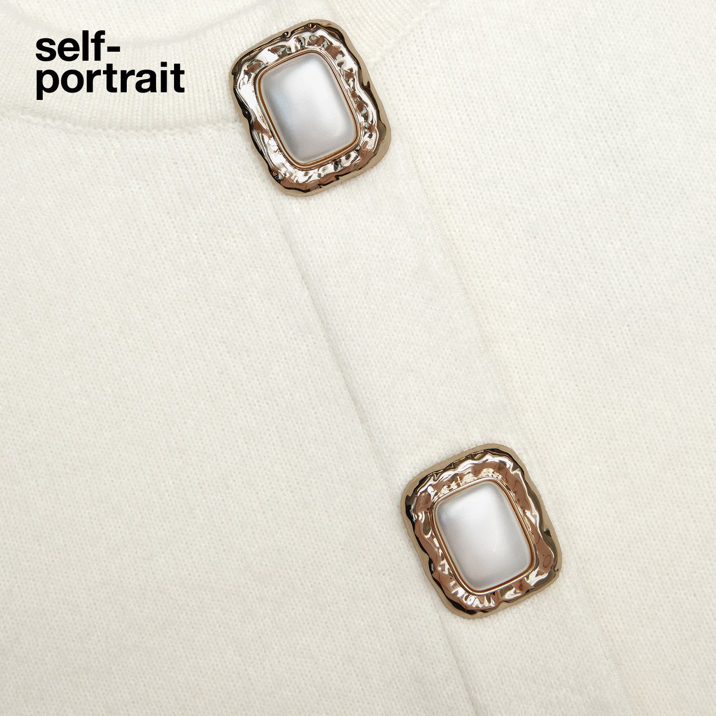 self-portrait 2025秋冬新款象牙白羊毛混纺长袖针织外套开衫上衣