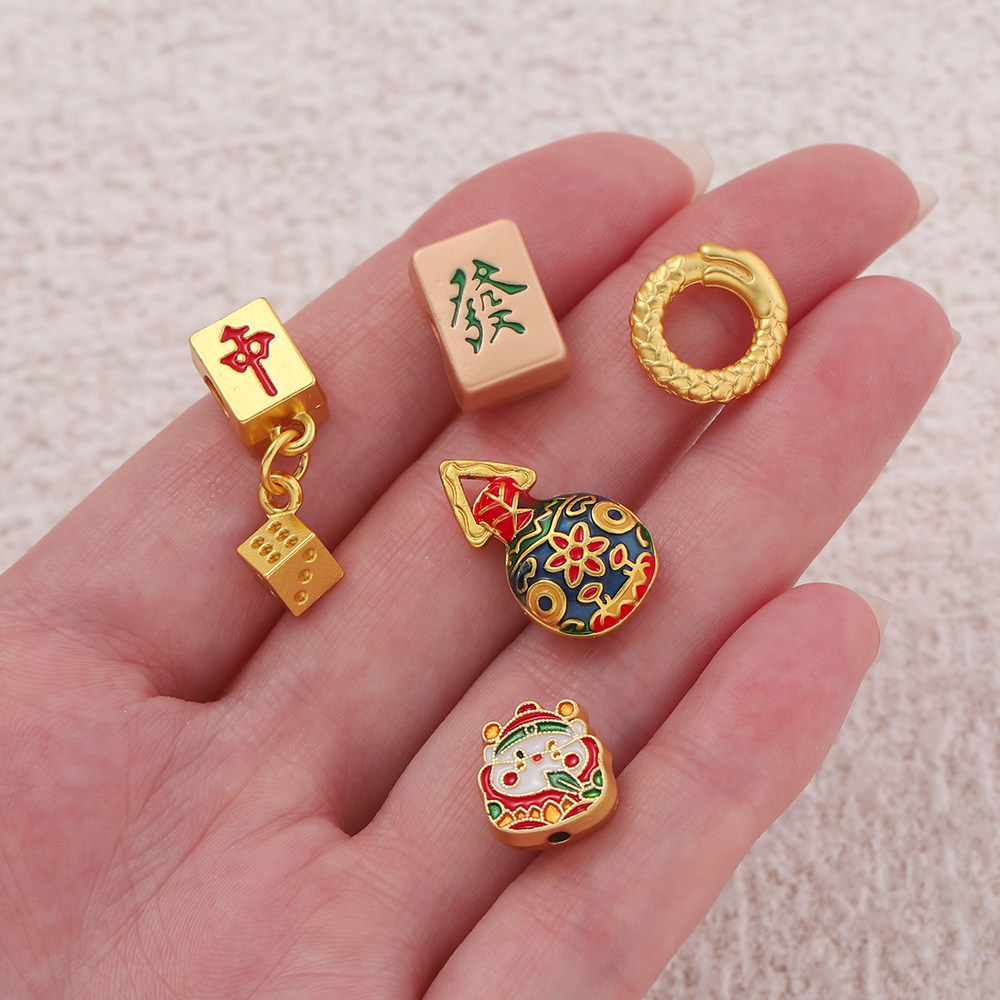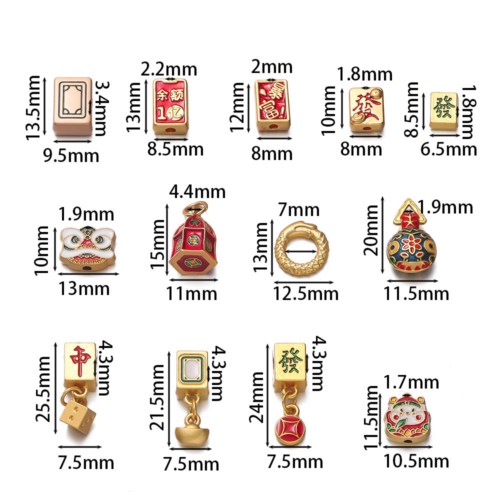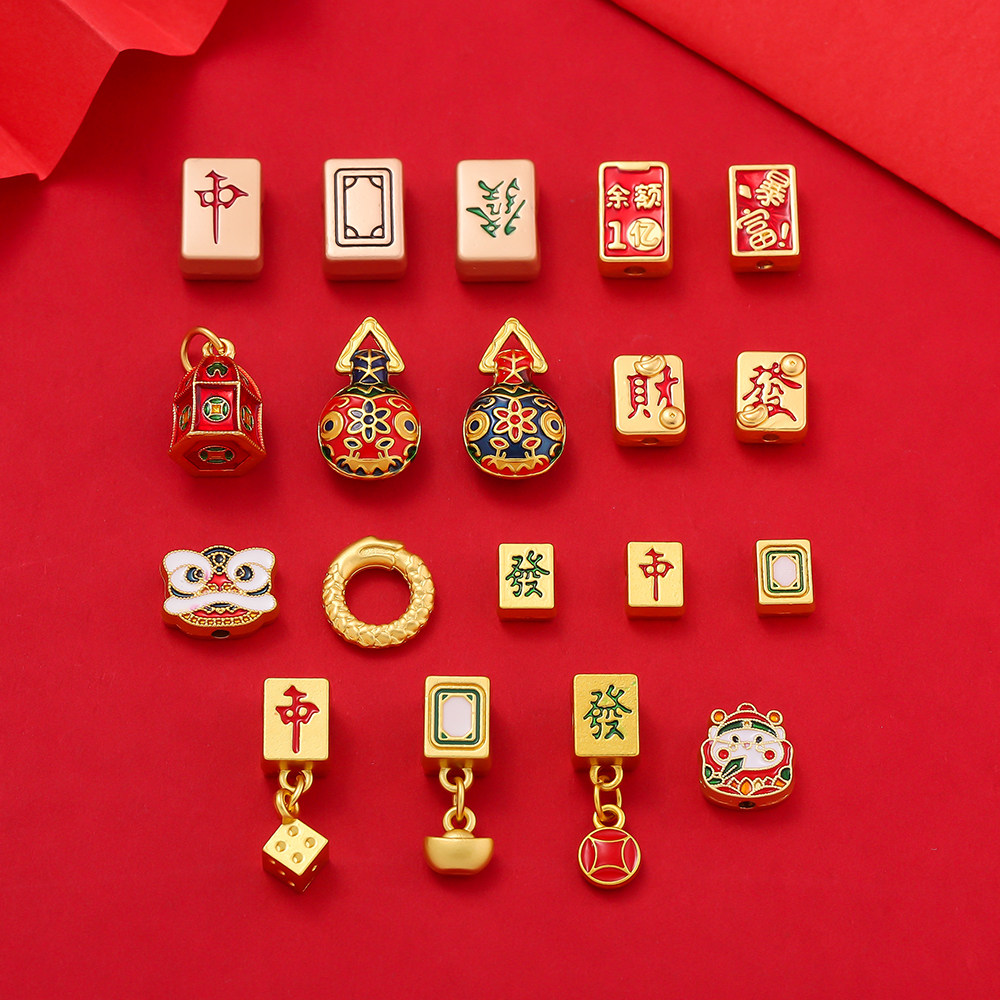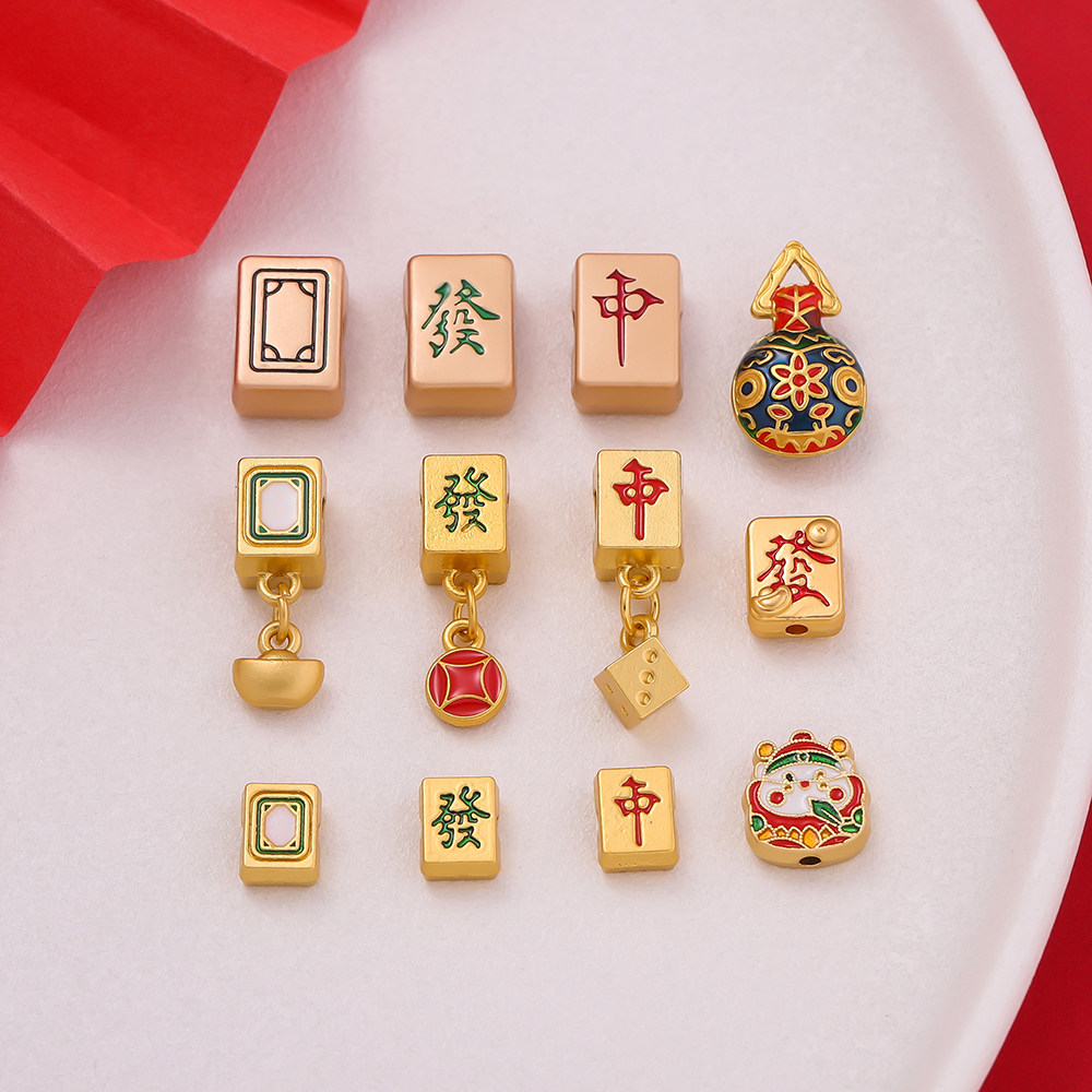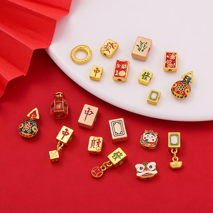 麻将红中发财白板隔珠小沙金吊坠挂件 手工diy编织手链饰品配件
