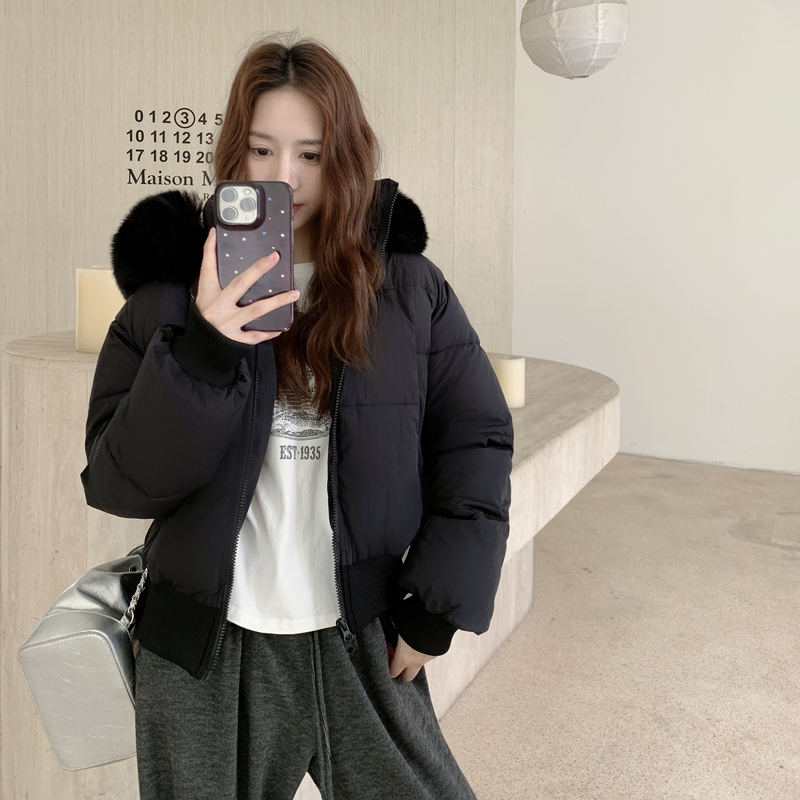 150cm显高矮个子冬装加小码XXXS女装毛领连帽收腰加厚短款棉服女