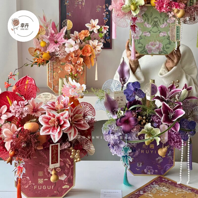 新年福桶年宵花冬青插花盒