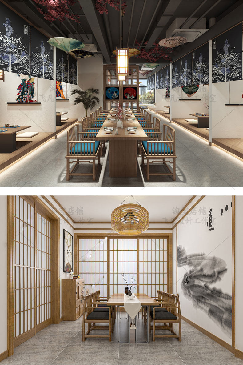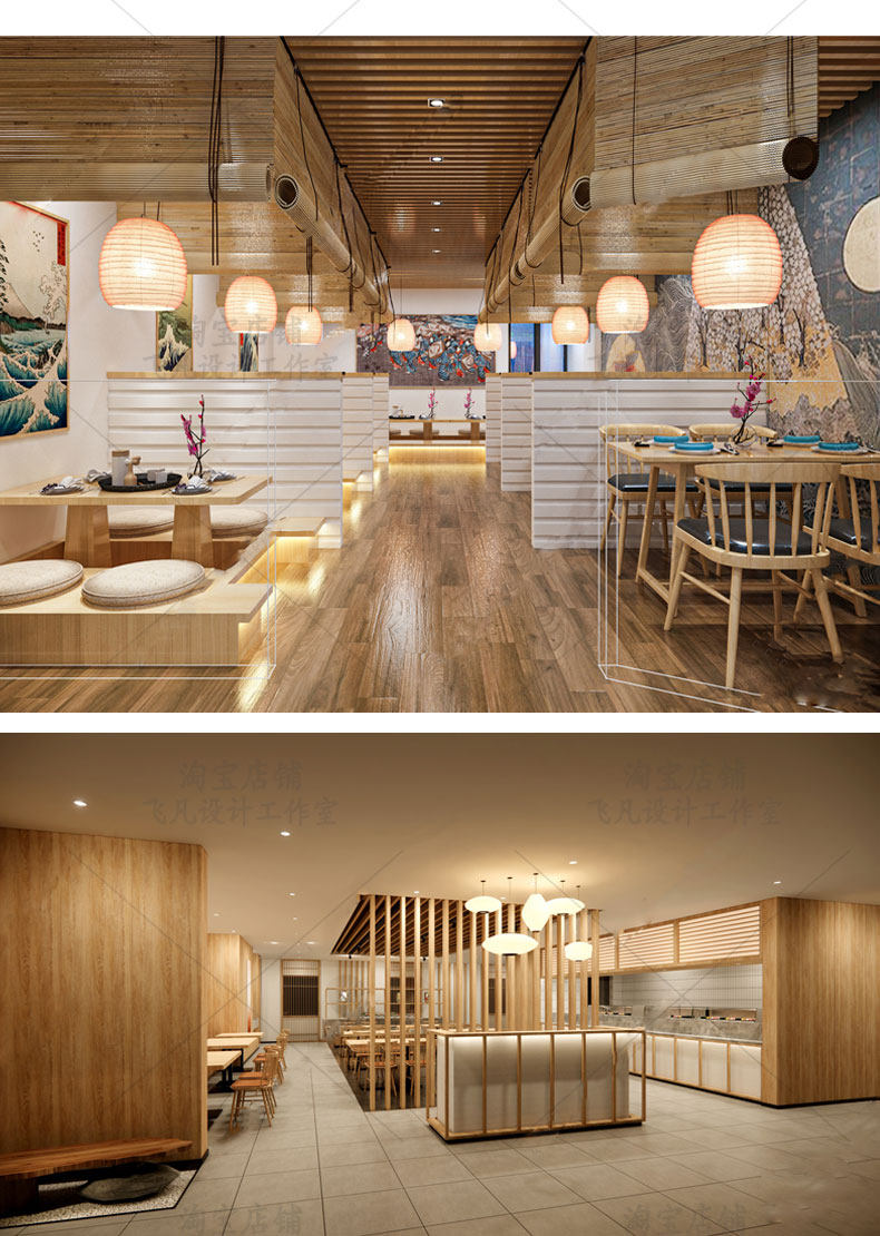 日式餐厅su模型 日韩料理店居酒屋饭店餐饮店铺门头室内装修设计