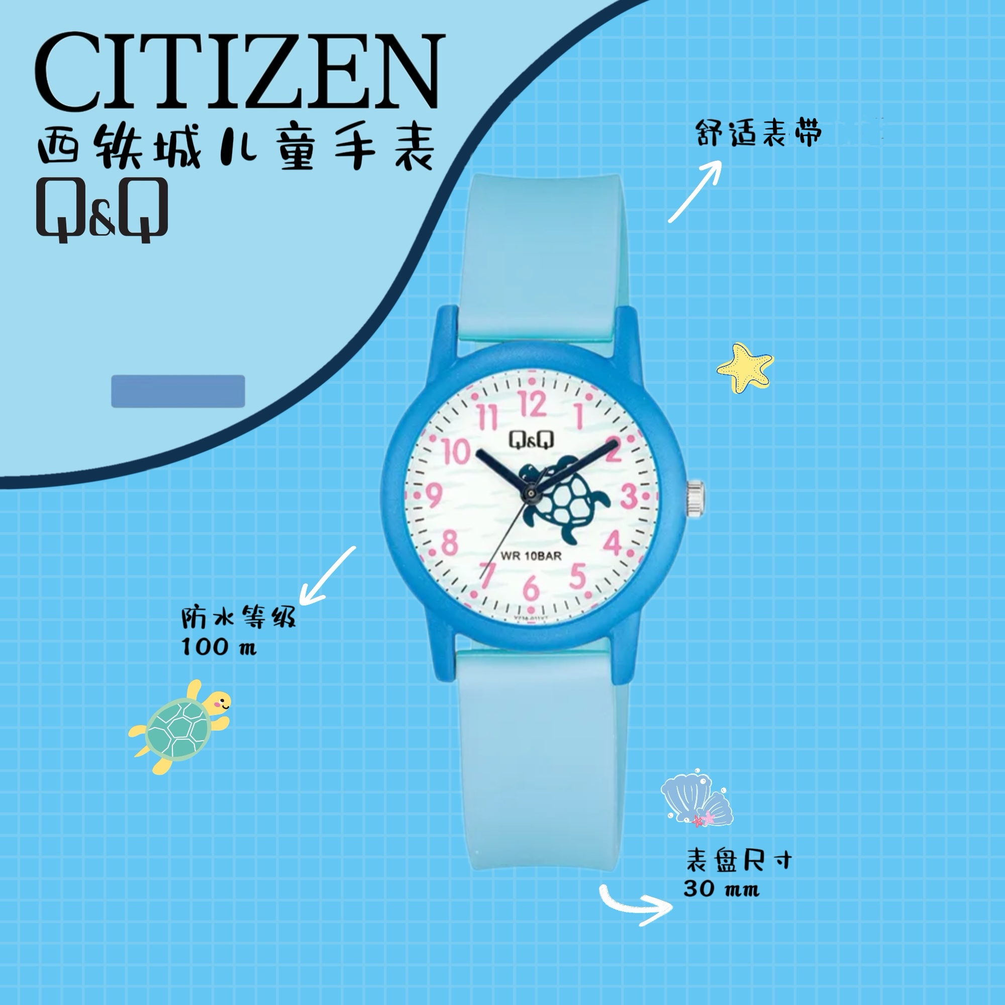【蓝色海洋生物图案】西铁城Q&Q儿童手表静音只看时间防水石英表