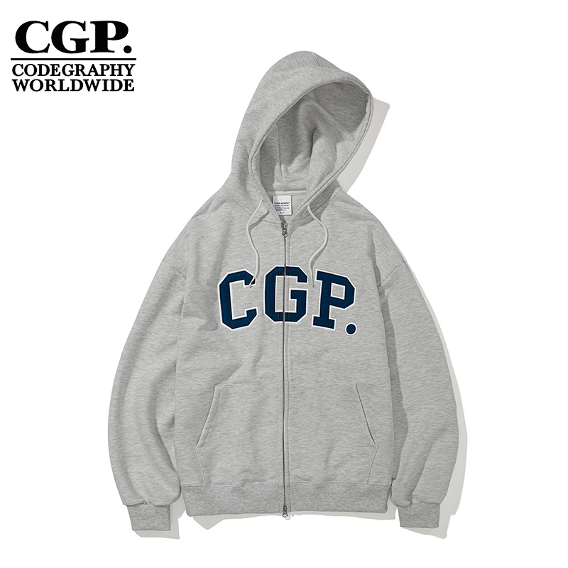 CODEGRAPHY韩国CGP弧形logo连帽拉链衫加绒卫衣外套CBCFUTC003