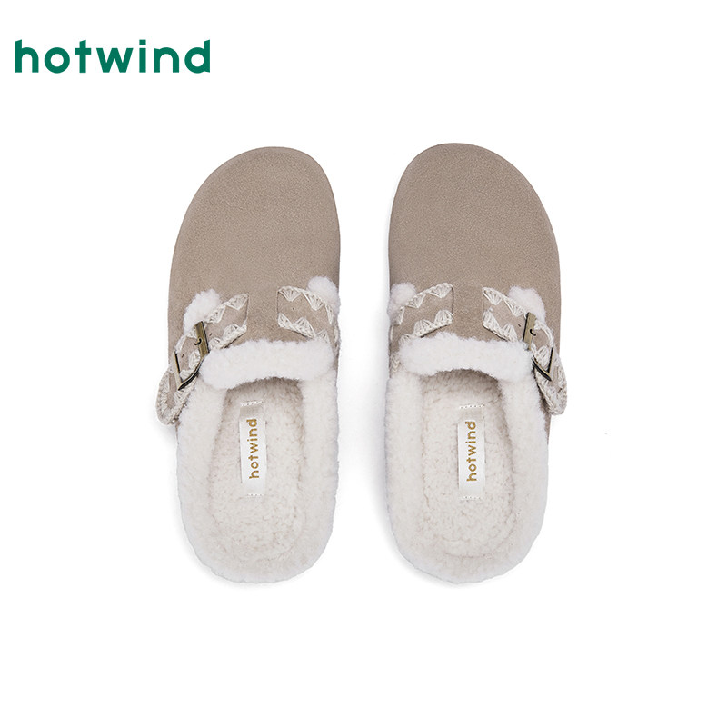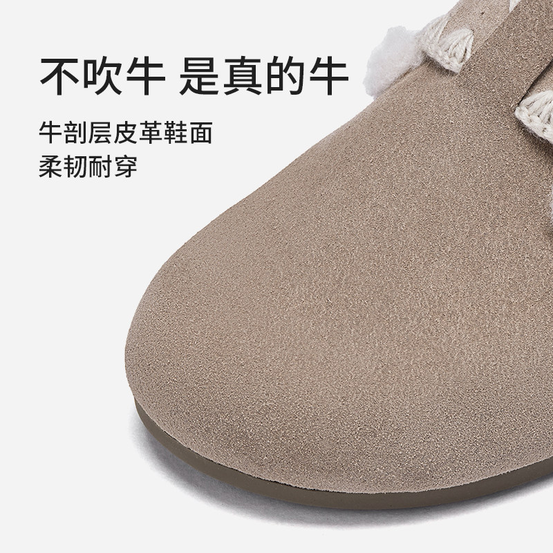 热风加绒勃肯鞋女2025年冬季新款复古毛毛鞋百搭包头拖休闲半拖鞋