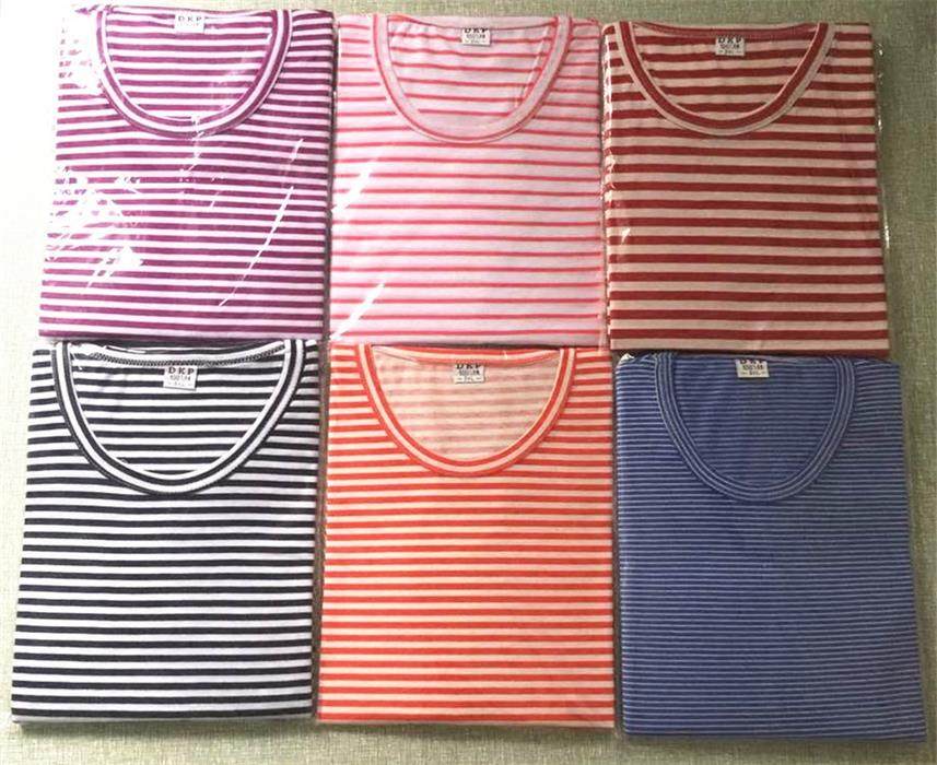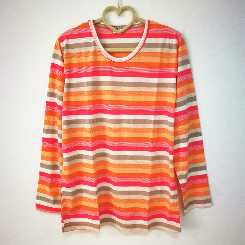 中老年女装春季打底衫薄款圆领长袖纯棉条纹体恤妈妈装春秋装t恤