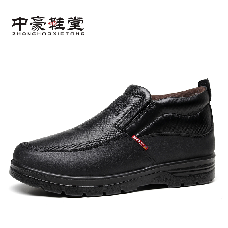 老北京布鞋羊毛男棉鞋高帮加绒保暖皮面爸爸鞋防滑老人休闲中老年