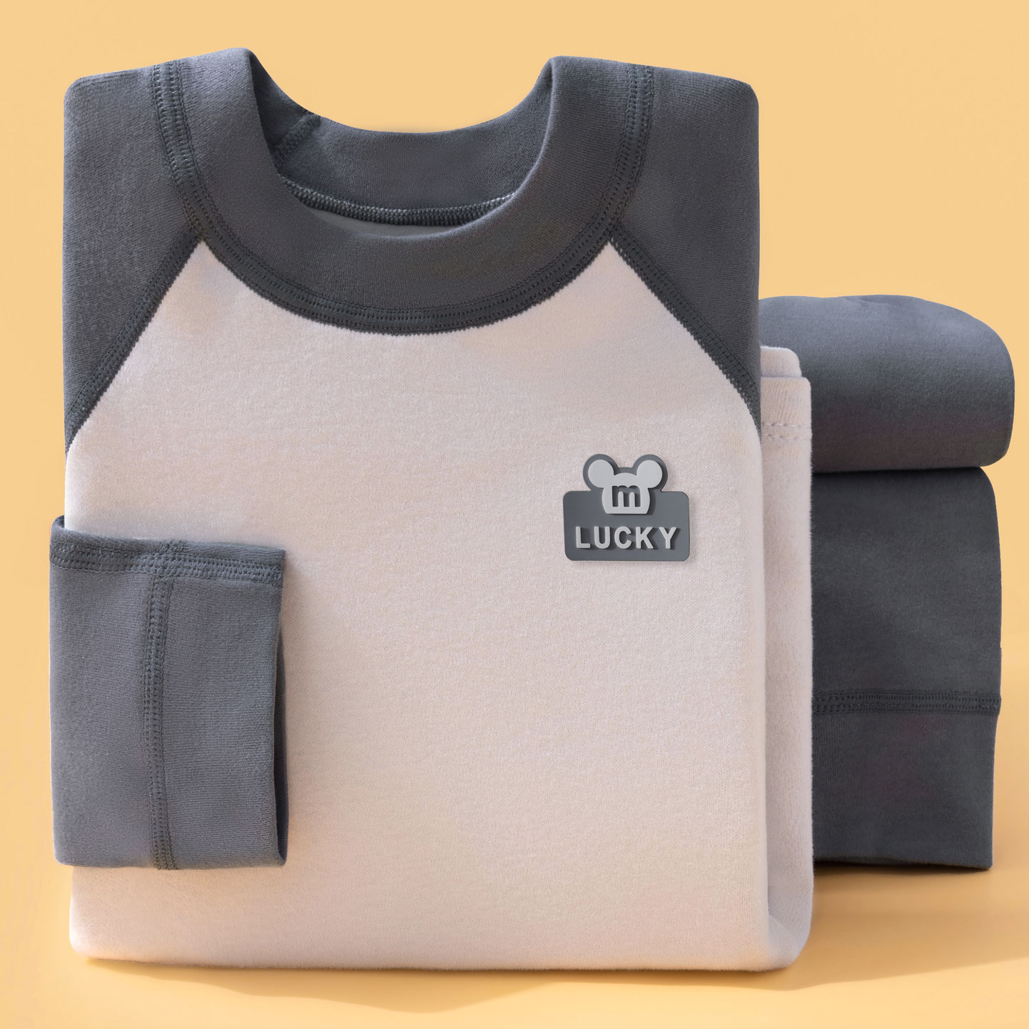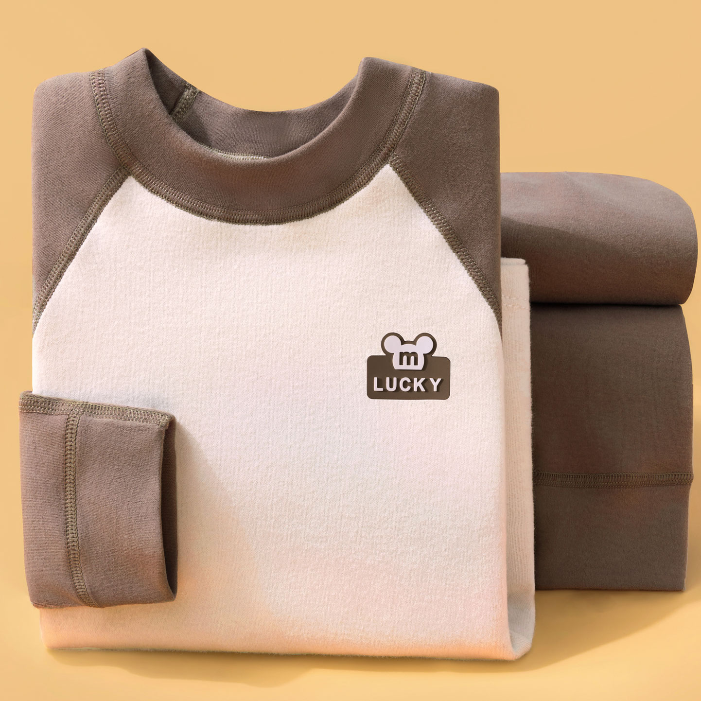 A类纯棉内衣套装秋冬加厚秋衣秋裤打底衫撞色插肩袖男女童家居服