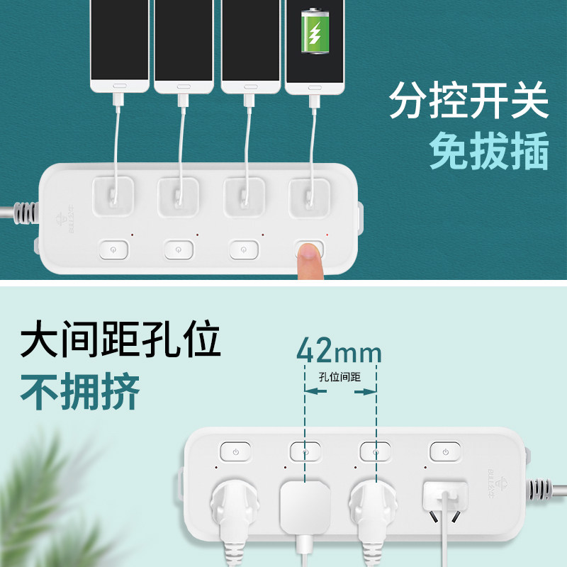 公牛超长插线板10米长线插排