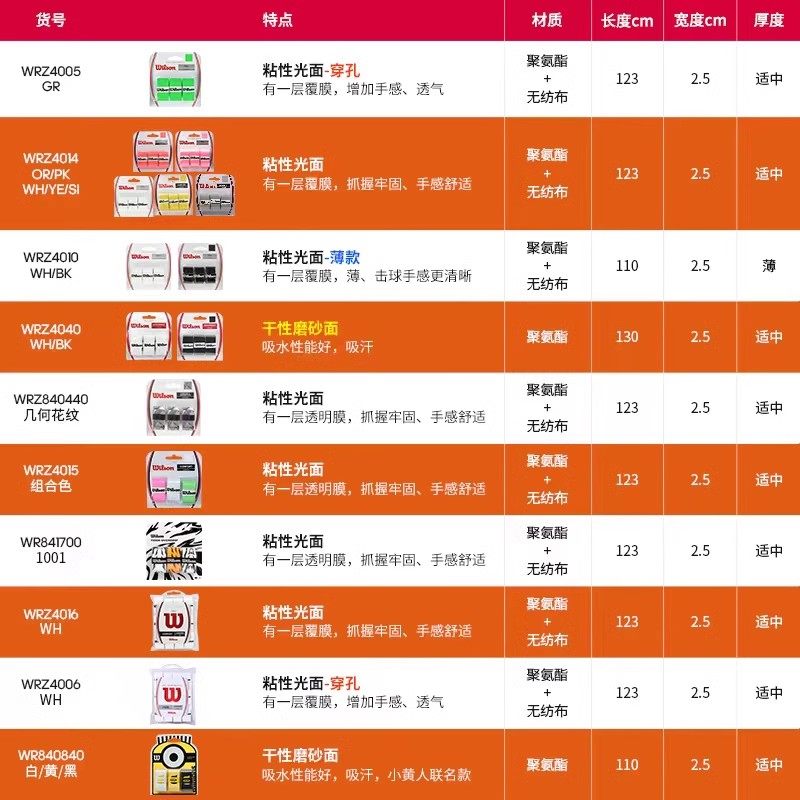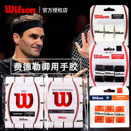 Wilson威尔胜网球拍手胶干性吸汗带粘性白色带孔法网费德勒同款