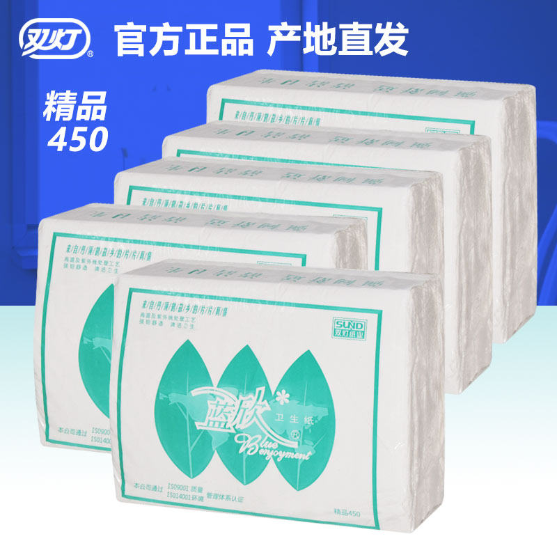 双灯蓝欣平板卫生纸精品450草纸20包家用厕纸家庭实惠白色擦手纸