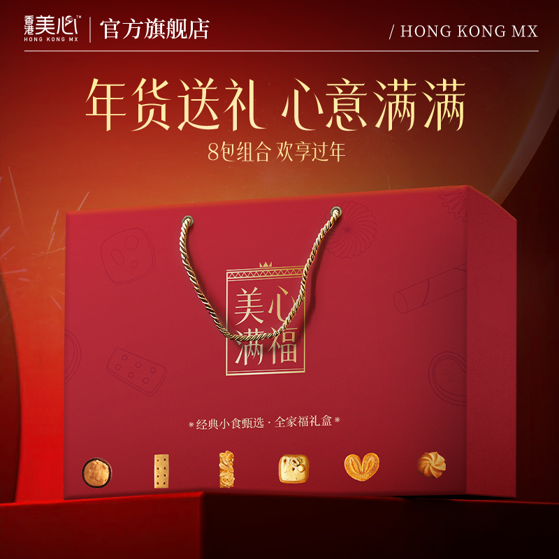 美心8包烘焙礼盒多口味蛋卷饼干零食大礼包全家福办公室蝴蝶酥