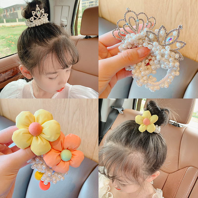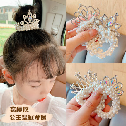 儿童皇冠头饰公主头绳简约气质高颜值丸子头珍珠发圈女孩扎头发饰