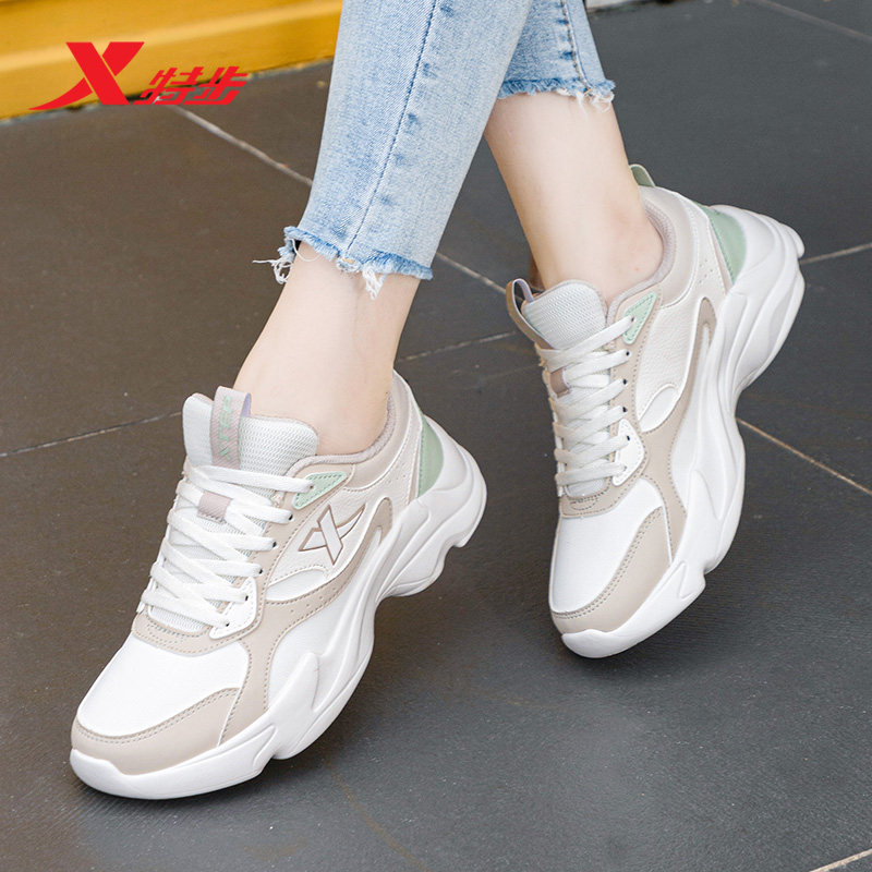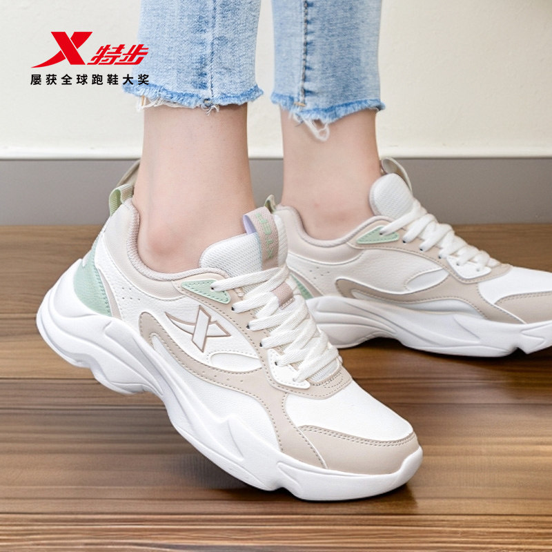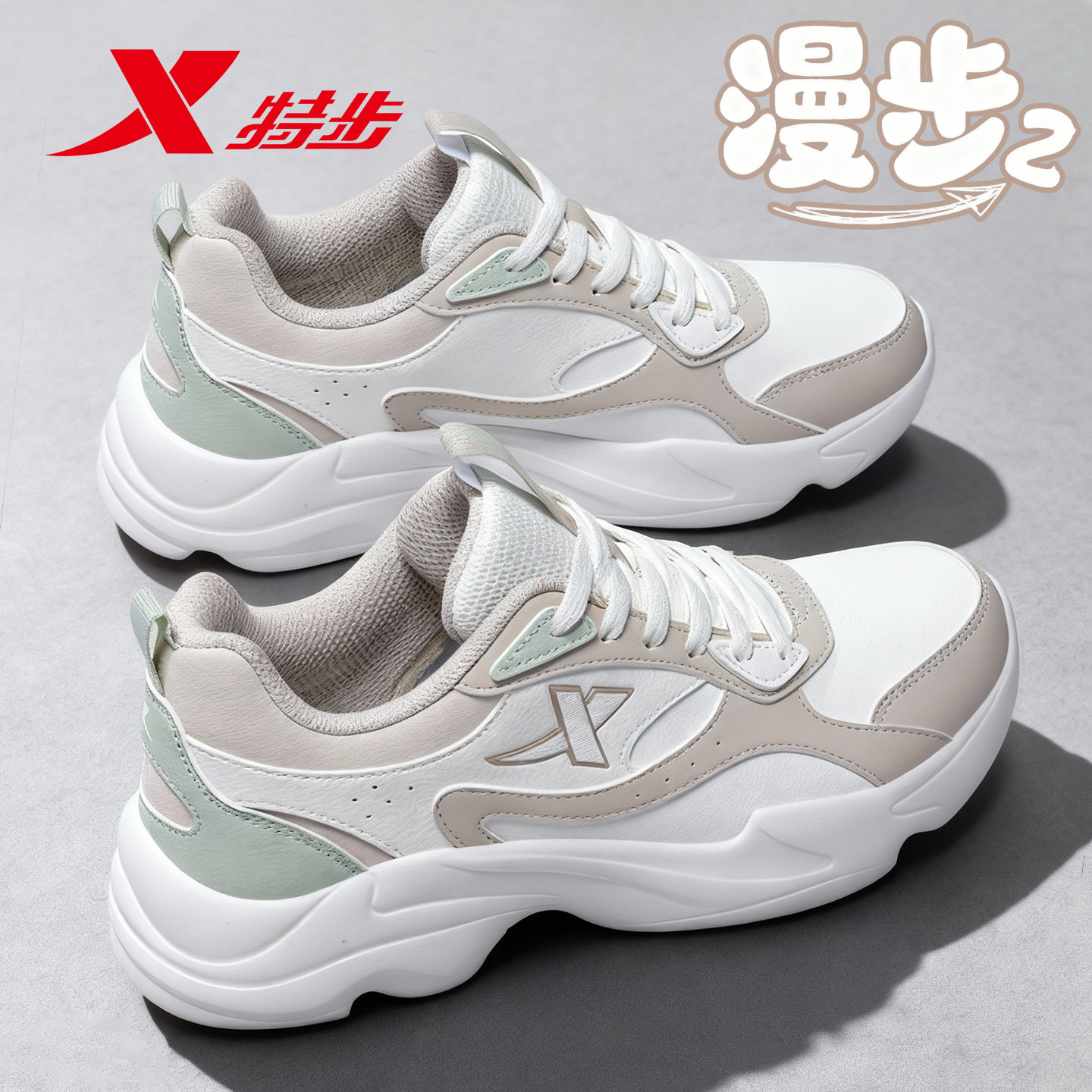 特步女鞋跑步鞋2026新款春季皮面防水女士休闲鞋子轻便软底运动鞋
